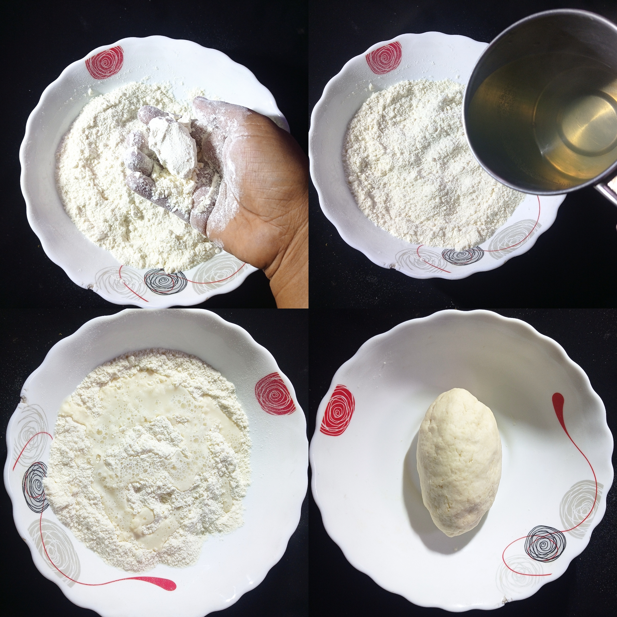 Then I first mixed the oil with the flour and kneaded it with my hands to see if it was perfect. Then I mixed the flour well with a little water as needed.
