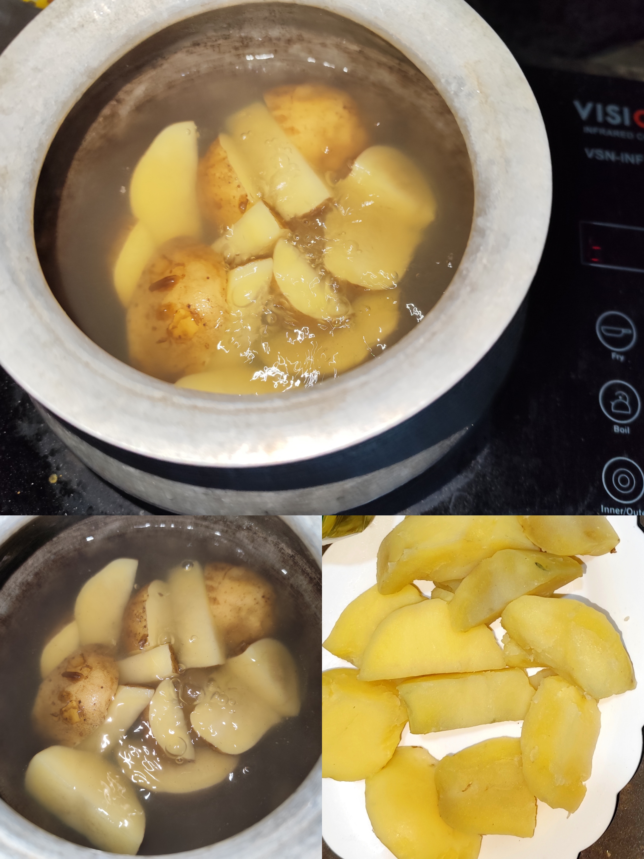 First, I took two large potatoes. Then I cut them in half and boiled them well.