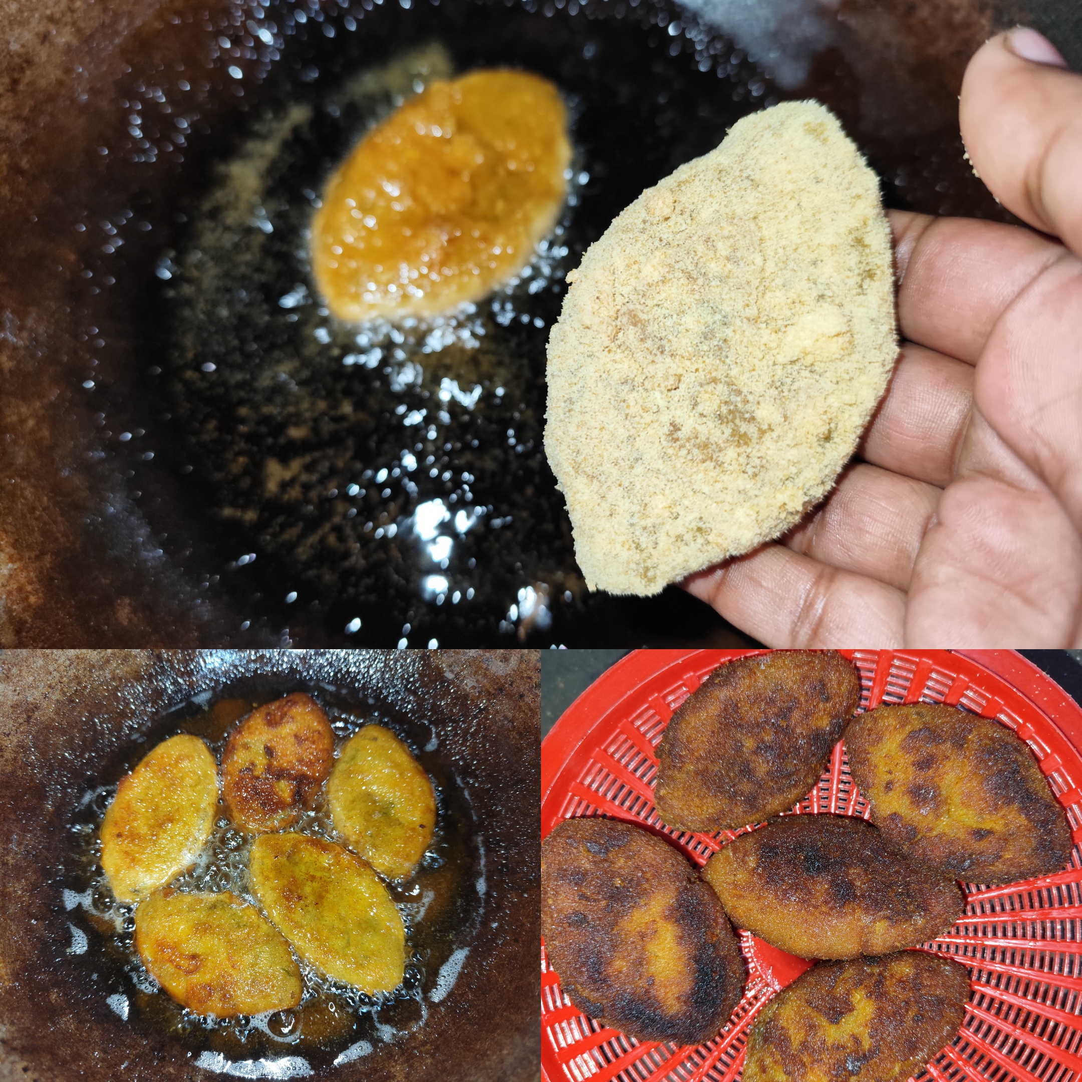 Then I added oil as per the size of the pan. Then I put the cutlets one by one in the oil and fried them well, turning them over and over until they were crispy. I fried them all in this way.