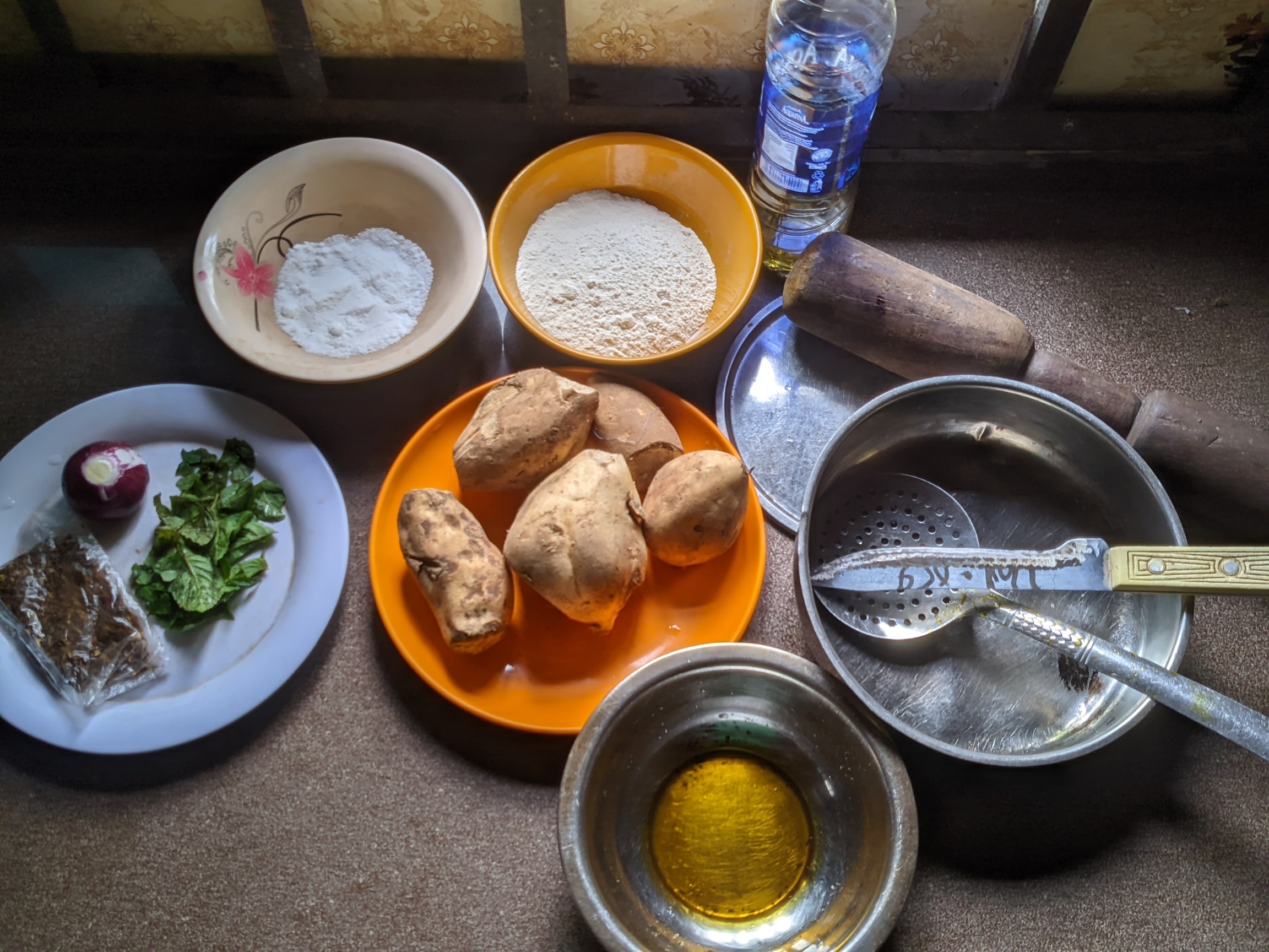 | Bowl plates | Used to contain flour, salt, mashed potatoes and other ingredients like my mustard oil etc |