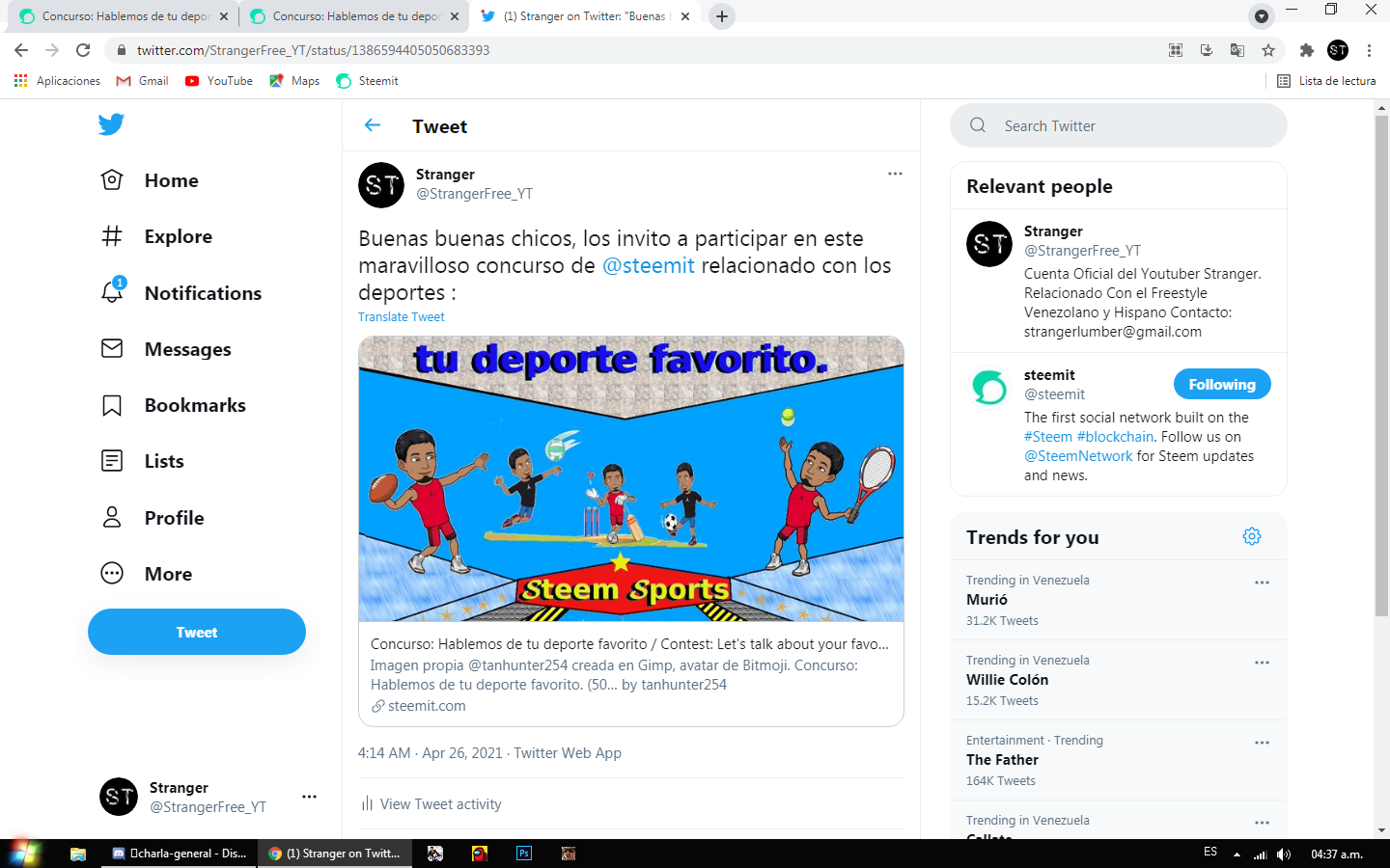 Publicacion en red social : https://twitter.com/StrangerFree_YT/status/1386594405050683393