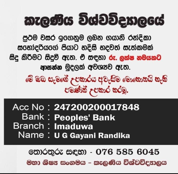 Recently we saw a post which is shared through social medias asking help for a heart surgery of a father of a university student Gayani Randika.