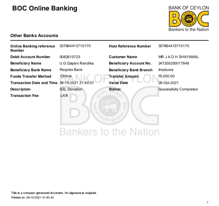 Currently she is studying in university of Kelaniya and As we got to know they are in a difficult struggle of raising money for her father's surgery. So we decided to show some support through our SSL-Charity project.
