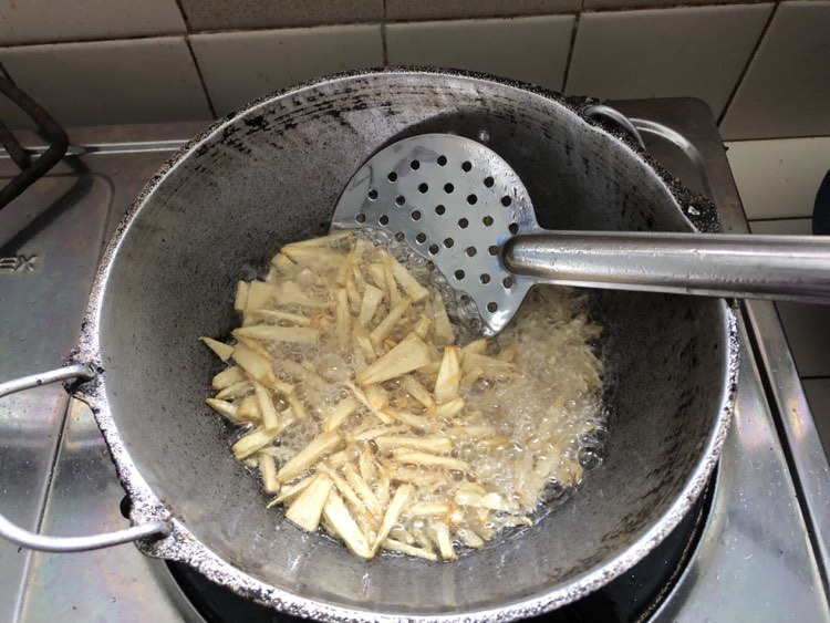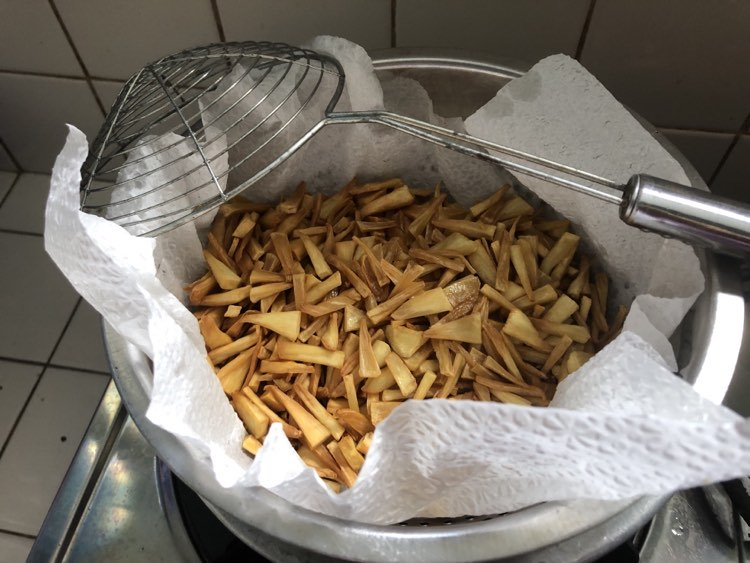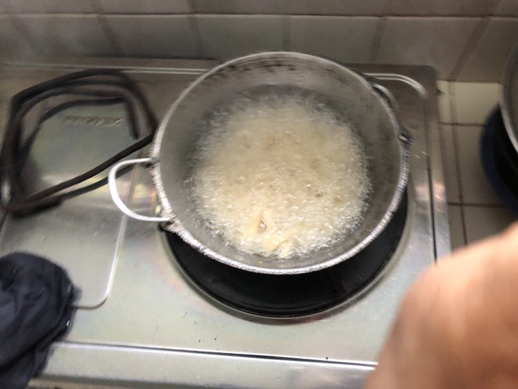 ඊට පස්සේ තෙල් ටිකක් ලිපේ තියල ගැඹුරු තෙලට පොඩ්ඩ පොඩ්ඩ දාල බැද ගන්න. ඔය විදියට ඔක්කොම දෙල් ටික බැදුනට පස්සේ පැත්තකින් තියන්න.