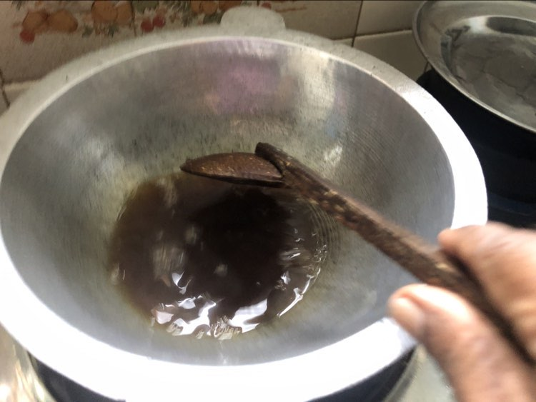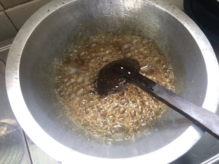 මි ලඟට සාස් පානකට සීනි කෝප්ප බාගයක් විතර දාල පත් පැණි වෙන්න ඇරලා උණු වතුර ටිකක් එක් කර හොදින් හැඳි ගාන්න . ඒකට දිය ලුණු ටිකක් එක් කරන්න අමතක කරන්න එපා. පස්සේ පැණි ටික හොදට උණු වුනාට පස්සේ බැදලා පසෙකින් තියා ගත් දෙල් ටික එකතු කර හොදින් කලවම් කරන්න. විනාඩි දෙකකින් විතර පසු භාජනයේ ඇති පැණි ගෑ වුණු දෙල් ටික වෙනත් භාජනයකට මාරු කරන්න. නැත්නම් රස්නේ වැඩි කමට කර රස එන්න පුළුවන්. නිමෙනකම් ඒ භාජනයේ තුනී කර තබා නිමුණු පසු හොදින් සීල් වෙන භාජනක්ට දමා වසා තබන්න, ඉන් පසු ඔබට අවශ්ය ඕනෑම මොහොතක එයින් ටිකක් අරගෙන රස බල්ලන්න. ඔබත් පුදුම වේවි ඒ රසටය.