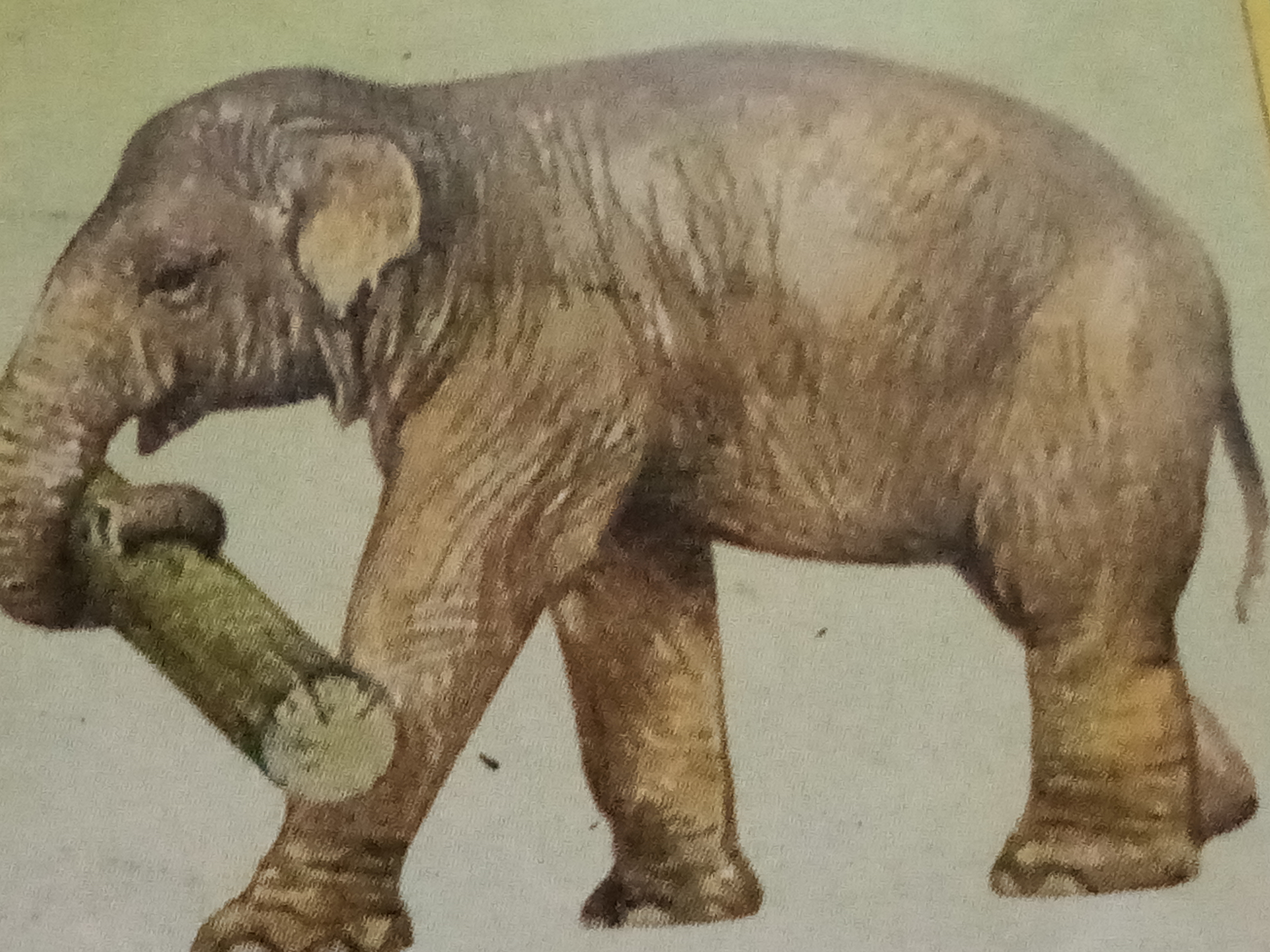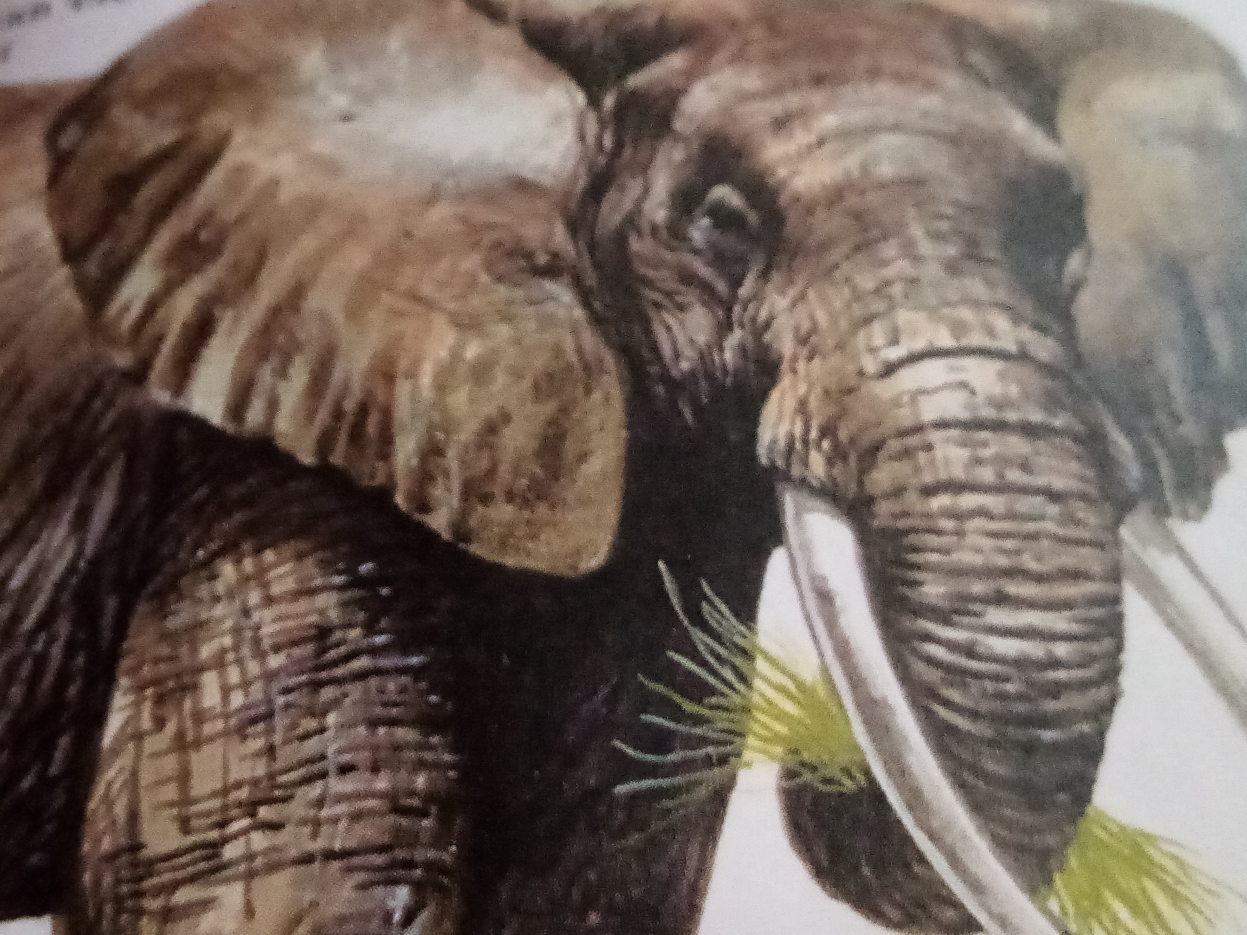 An elephant's trunk is like an all-purpose tool.it is strong enough to lift heavy tree trunks and yet so sensitive that it can pick ripe fruit without damaging it.The trunk is also used for smelling,washing,breathing sounds.Tusks too,have many uses,including digging for roots water,and fighting off enemies.there are two kinds of elephant -African and asian.