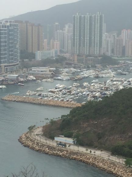 มองจากมุมนี้ จะเห็นเรือยอร์ชจอดกันเรียงรายเป็นระเบียบอยู่ในอ่าว นอกจากนี้ยังสามารถมองเห็นถนนลัดเลาะไปรอบเกาะ