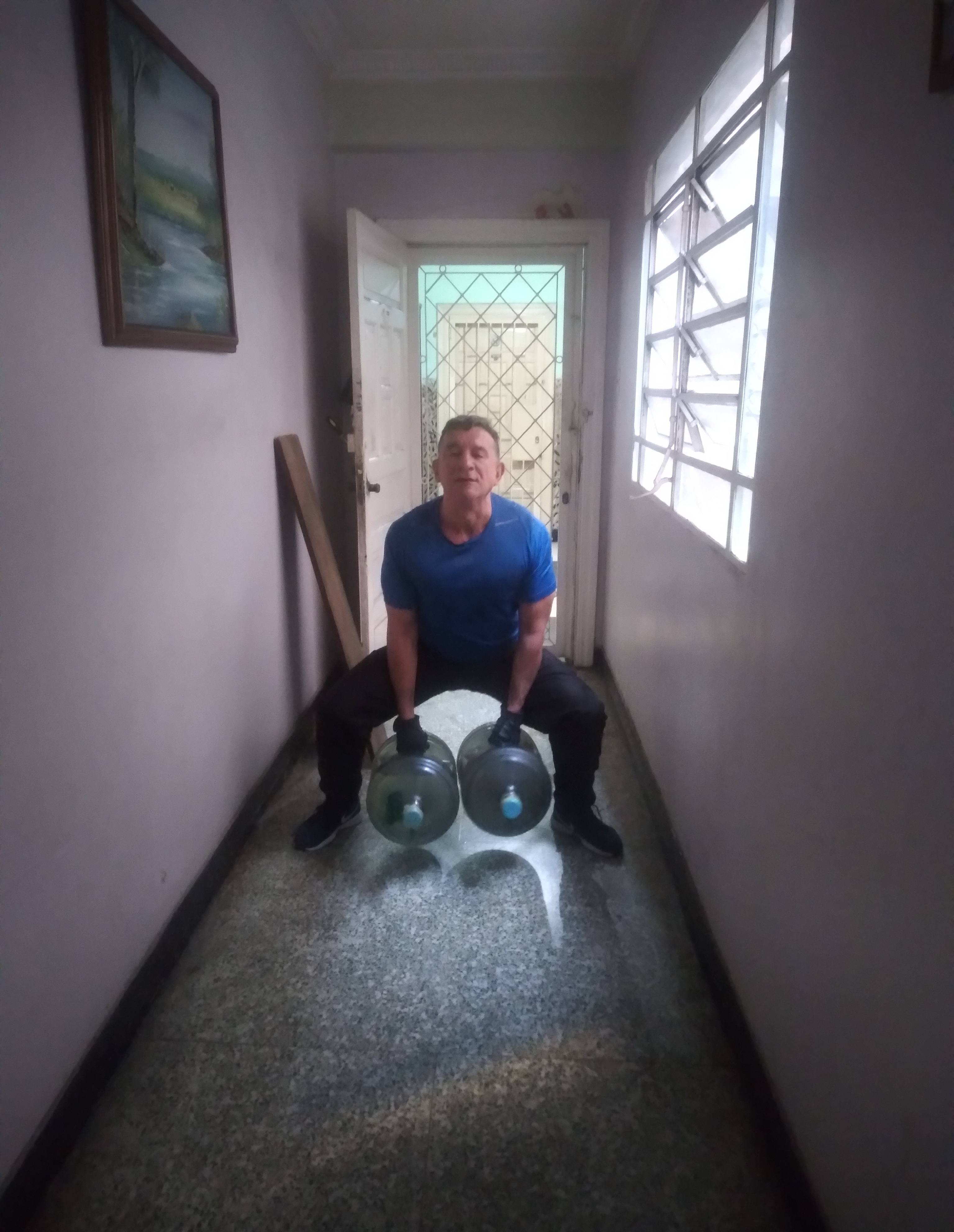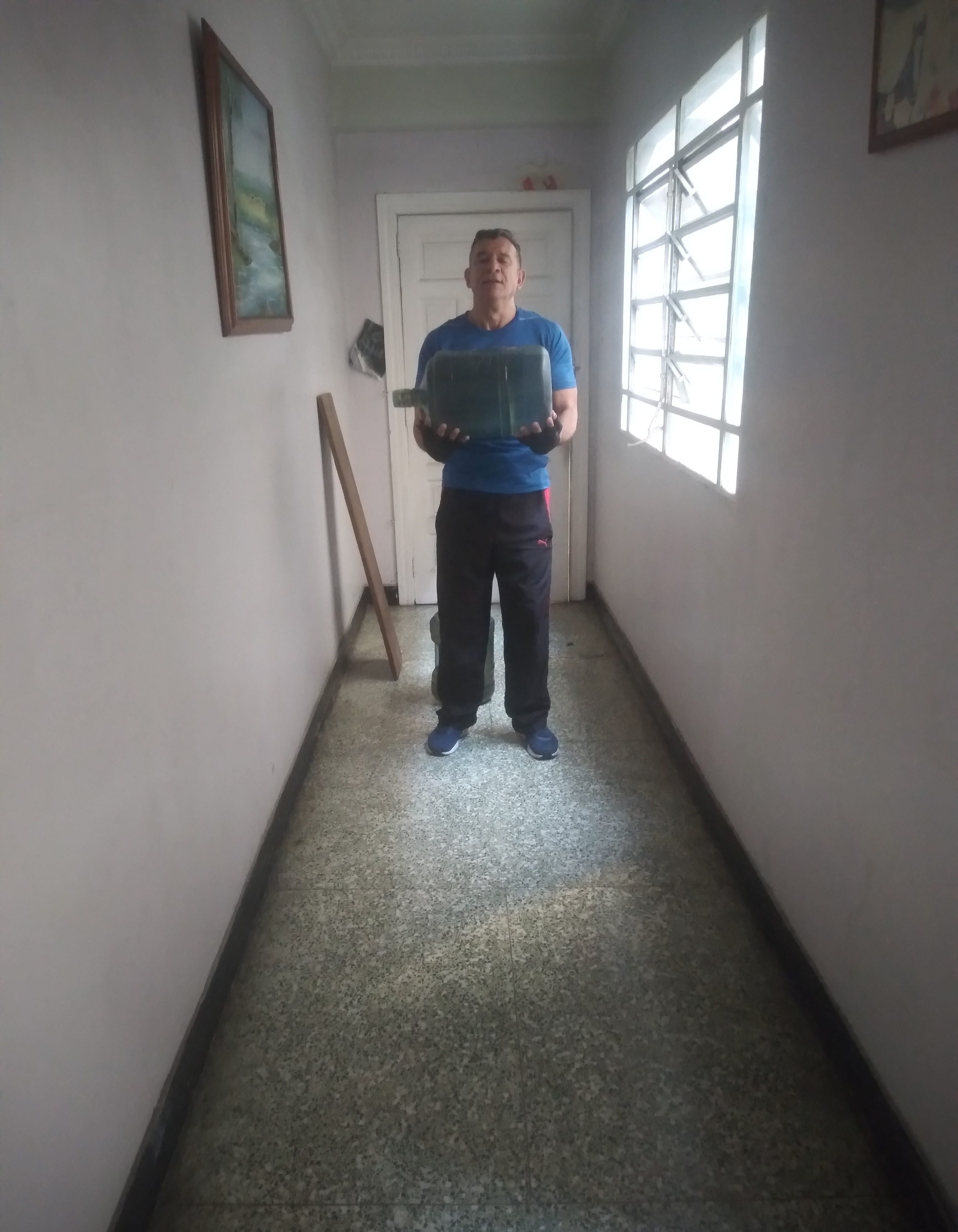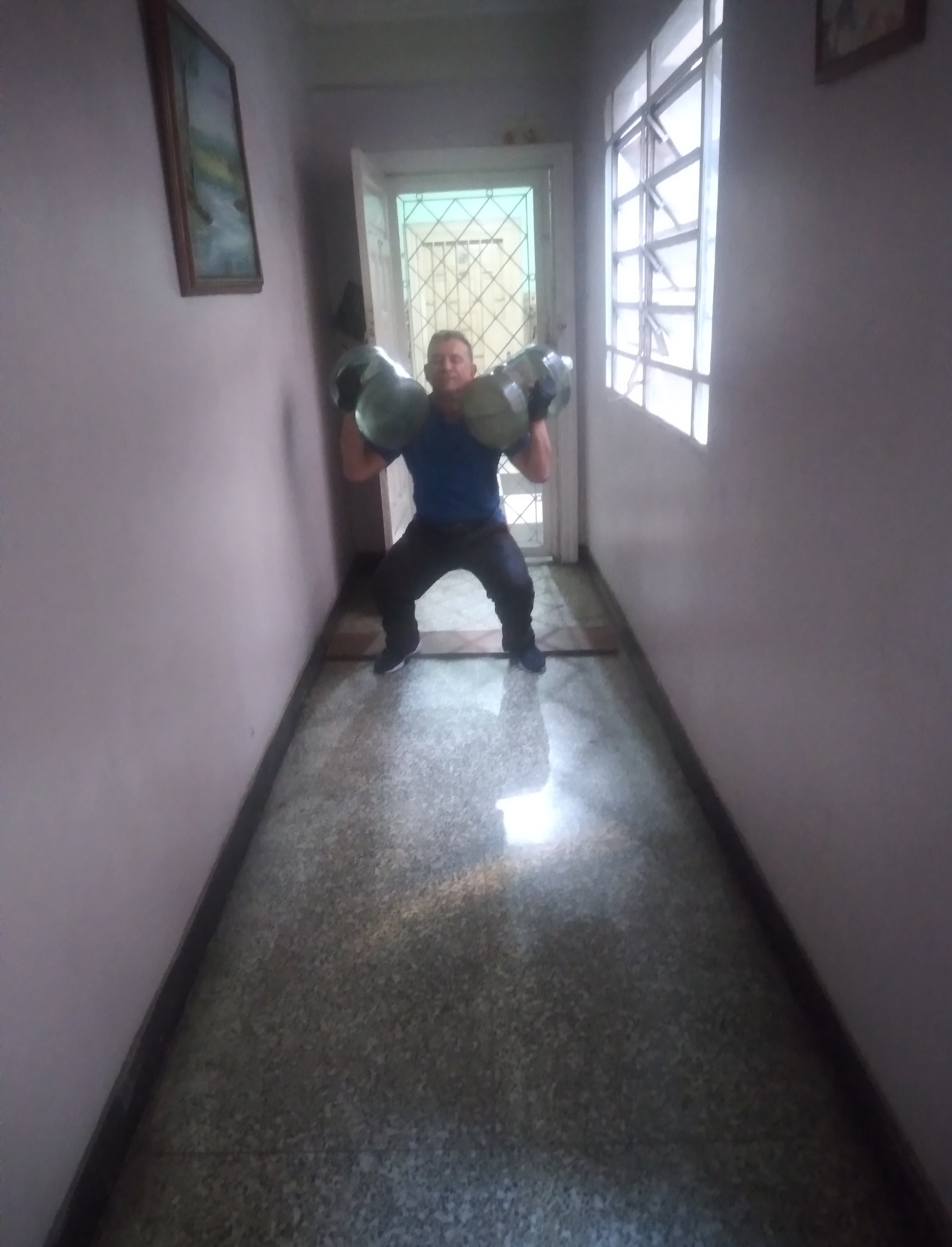 El segundo ejercicio también fue Curls de bíceps, lo realicé con el botellón. Hice 4 series de 25 repeticiones.