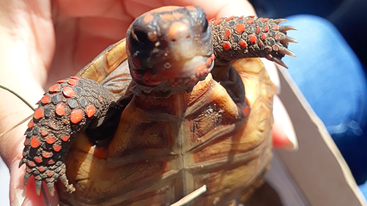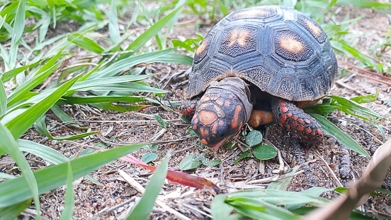 Salvada de las garras de un gatoSalvada debe su nombre a la morrocoya que fue rescatada justo en el momento que iba a ser devorada por un gato, era apenas un bebé que comenzaba a dar sus primeros pasos.