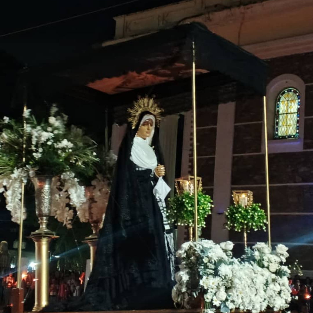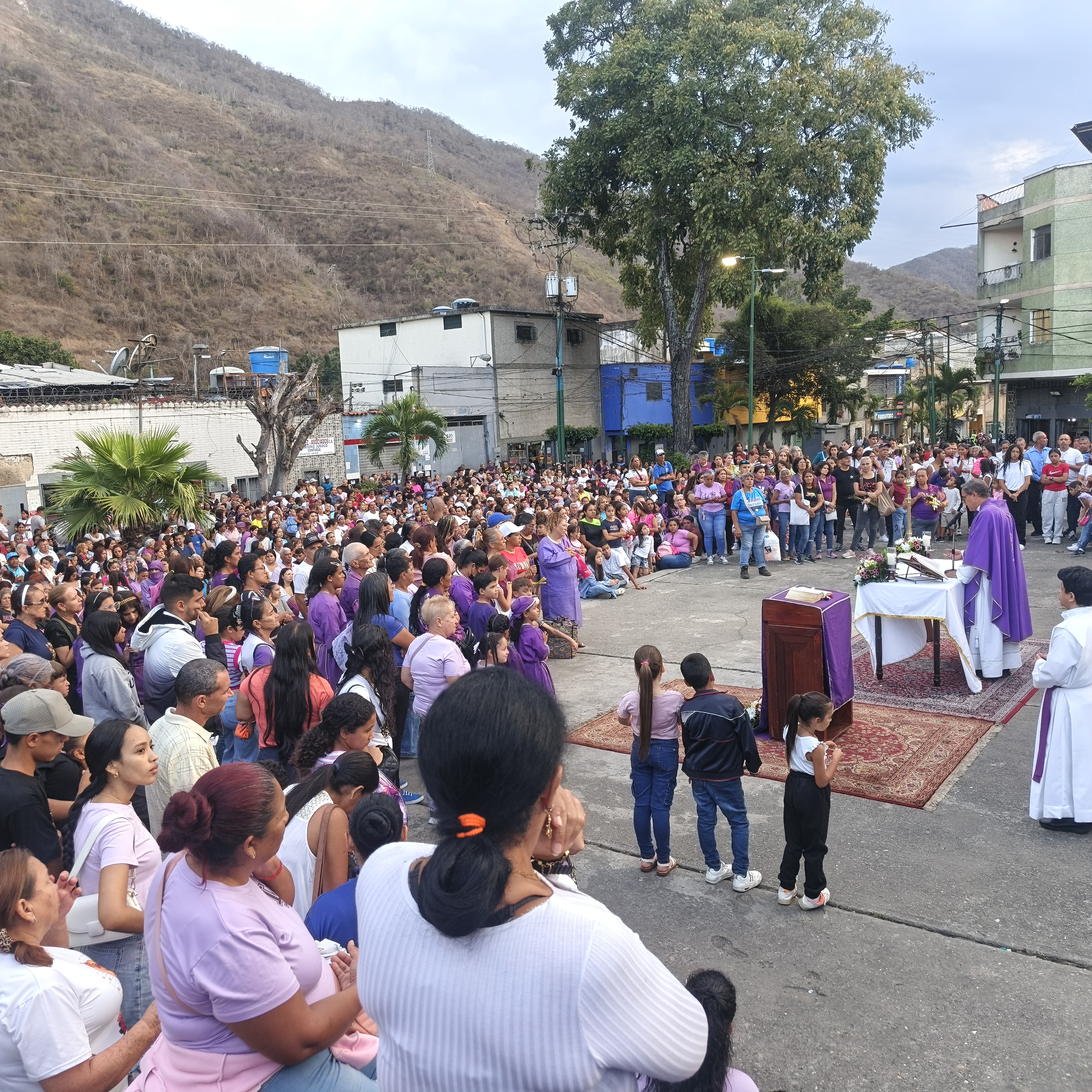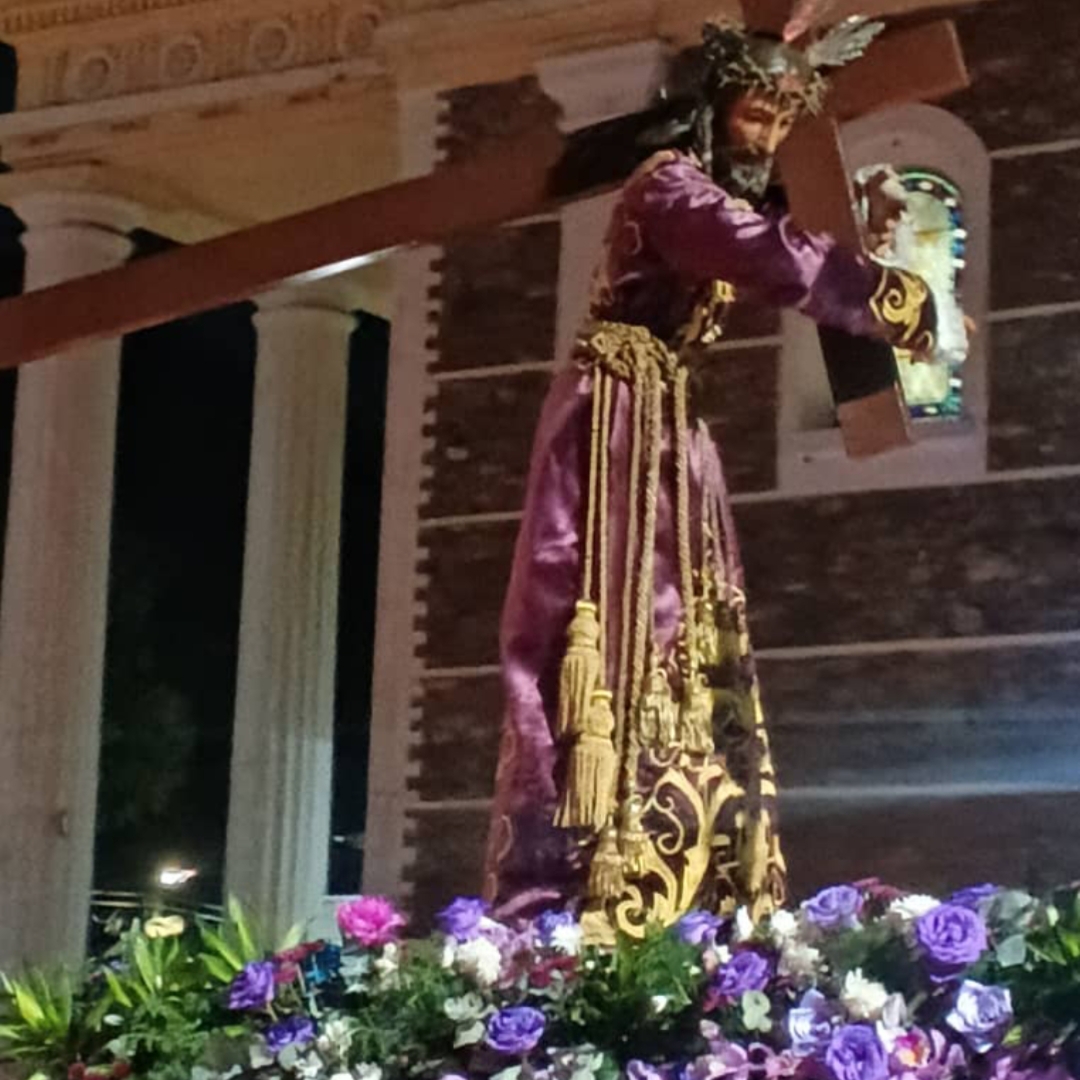 La misa duró alrededor de unos 40 minutos luego de ellos empezó la procesión con el santo Nazareno y la Virgen, es una tradición ver la imagen del Nazareno vestido de morado con la cruz a cuesta que inspira fé y cercanía a los fieles, la precisión de tu alrededor de 2 horas.