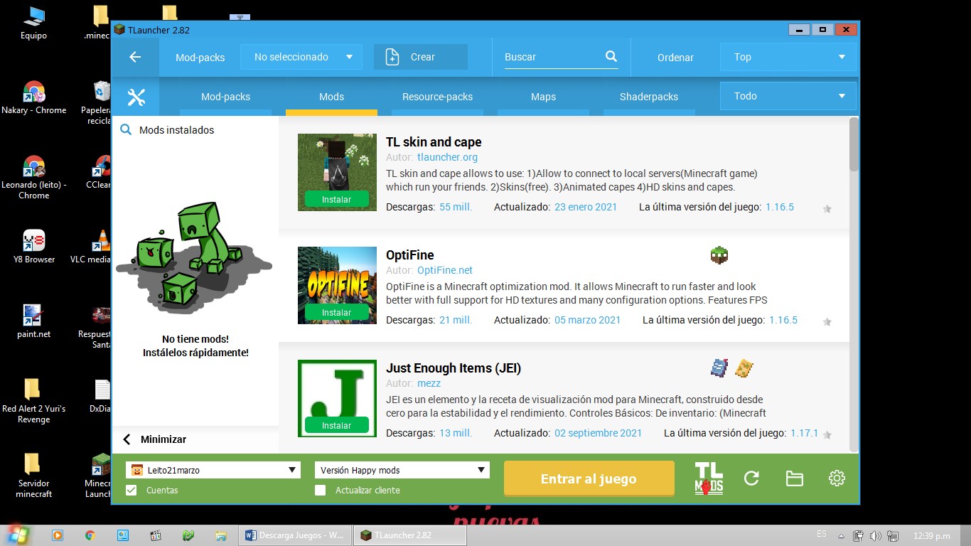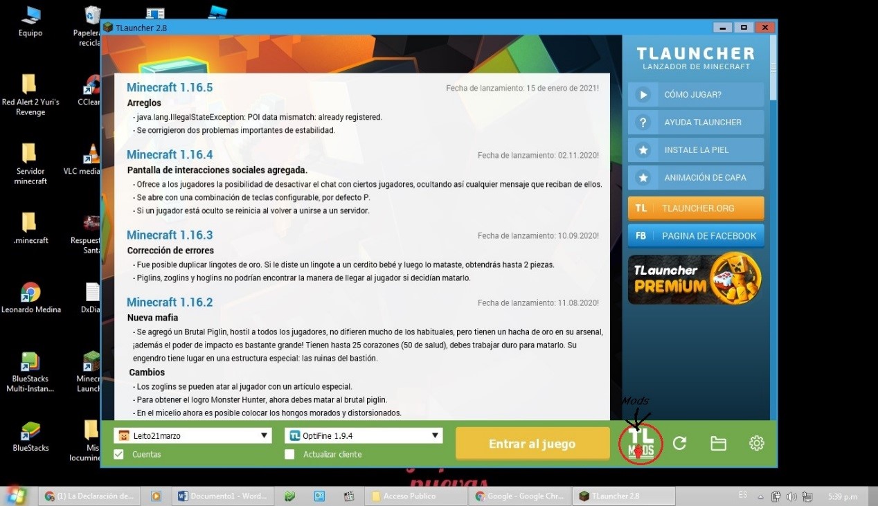 En el tlauncher es fácil ponerle mods solo le debes dar al botón de la imagen de abajo (tl mods)