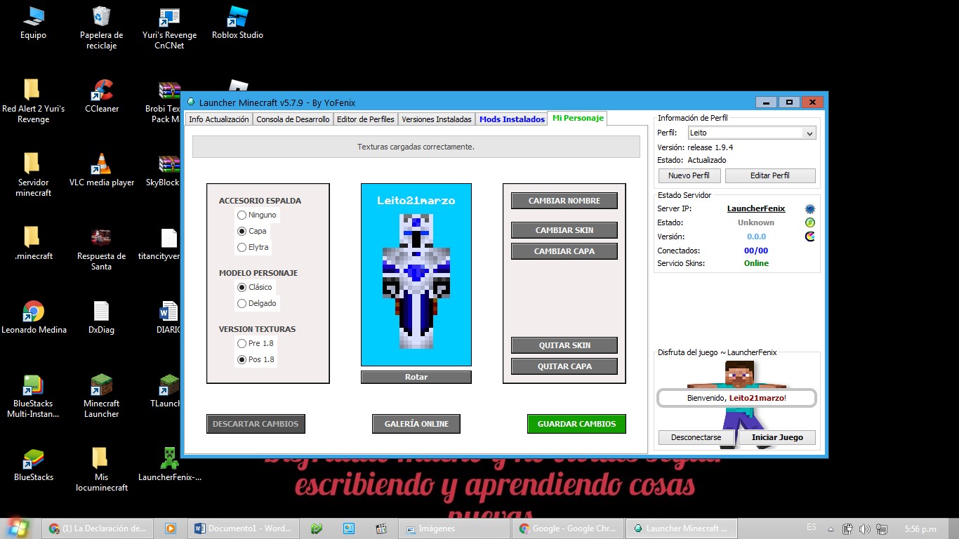 Metete en el link descarga el juego. Y descargas las versiones. Te creas una cuenta. Y para cambiarte la avatar le debes dar a (Mi personaje) y después le das a (Cambiar skin) pero primero le debes descargar la avatar aquí está para descargarlas https://launcherfenix.com.ar/wope/galeria-skins/ también puedes ponerte capas dándole al botón que dice (Cambiar capa) (capas https://launcherfenix.com.ar/wope/galeria-capas/)