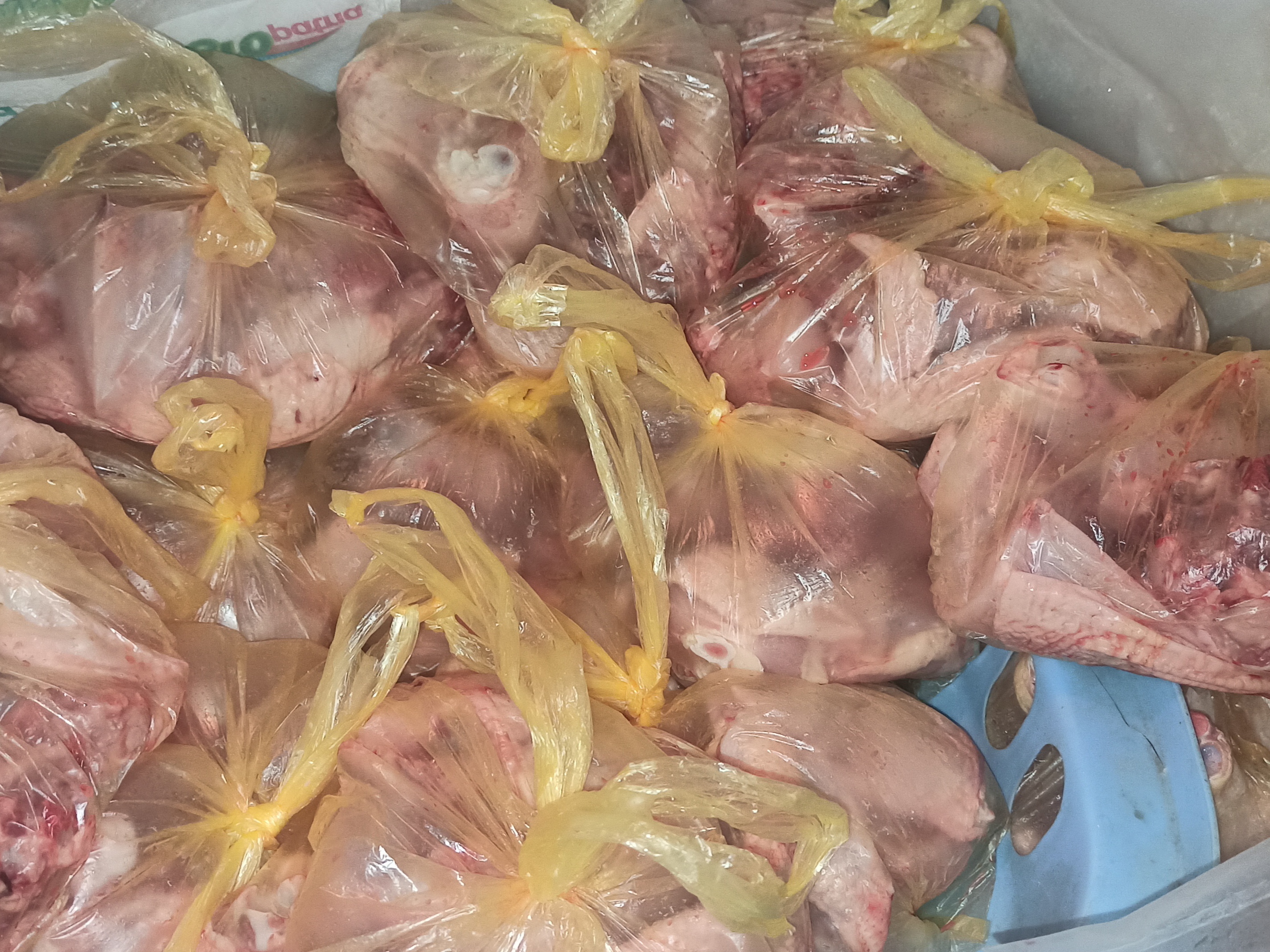 Como es de saber aquí en Venezuela es un poco difícil que todos tenga la posibilidad de comprar 1 pollo así de grande, entonces lo que hago es que los más grandes los picamos y vendemos bolsas de 1 kl de pollo picado y esto les ha gustado mucho a los clientes que por ahora son cercanos a nuestra localidad, aún me queda trabajo por hacer como por ejemplo encontrar buenos clientes fuera de mi entorno, aquí por muchas ganas de rendirse que den nadie lo hace amigos, hay que seguir porque así es que valoramos los sacrificios hechos en el pasado por alcanzar una meta.