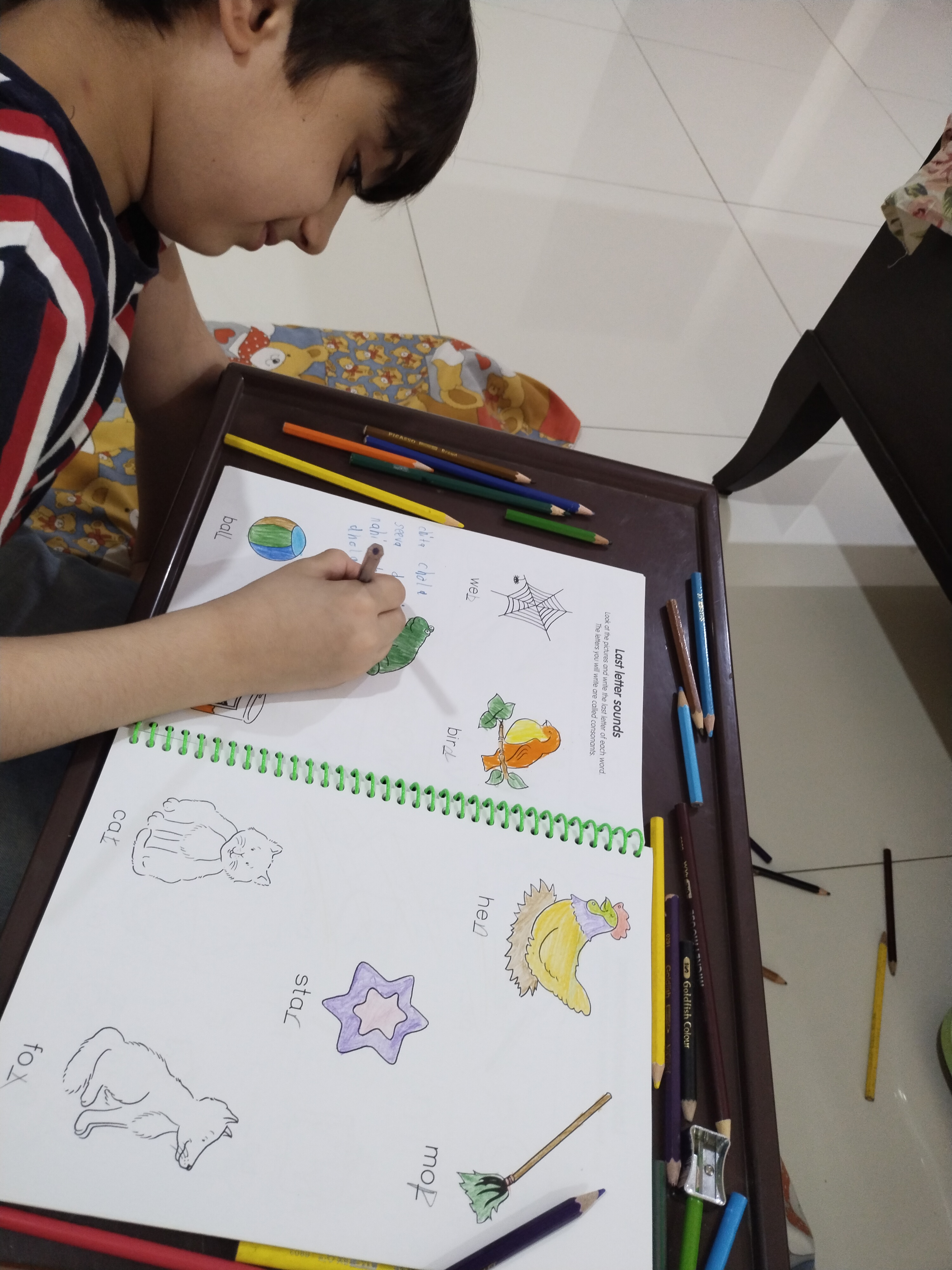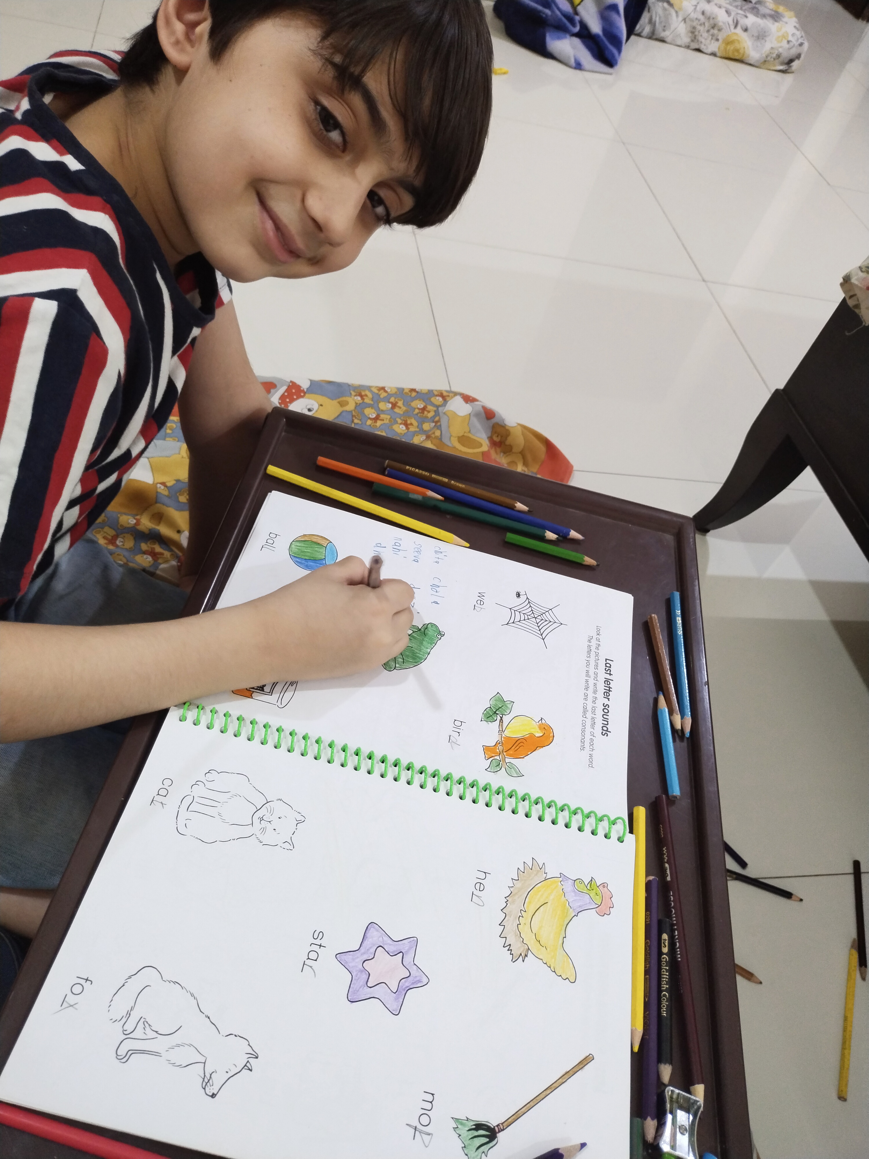 کلرز کرتے ہوئے اپنا بچپن یاد اگیا ۔۔اور حمدان نے مجھے باتیں سنائی اور میں نے اسے باتیں سنائی ۔۔بس اس طرح ہمارا اج کا دن گذر رہا ہے ۔۔میں اپ سب کو اج حمدان کی کلرینگ دیکھاوں گی