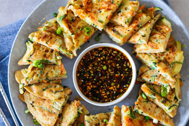 이 맛있는 한국식 부침개를 처음 보았을 때 저는 이 후라이팬에 머리를 숙였습니다. 감자, 다양한 야채, 사랑을 더하는 완벽한 냉장고 정리 식사입니다. 팬케이크는 아시안 디핑 소스와 함께 바삭하고 더욱 맛있습니다.