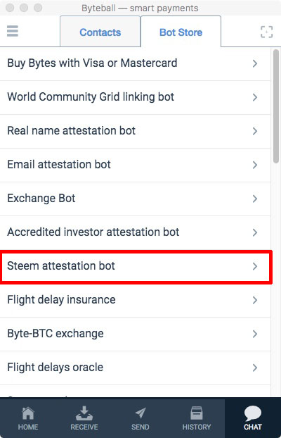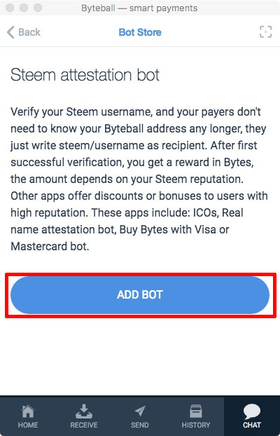 Click on "Chat", "Bot Store", "Steem Attestation Bot" and "Add Bot".