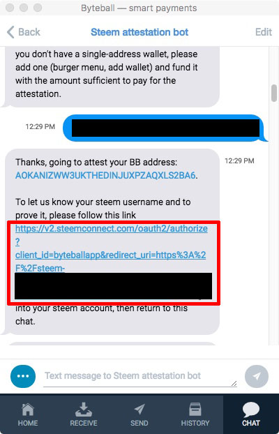 Now you will get a message saying "Your steem username is..." from the bot. Click on either "private" or public". If you click "public", Byteball Bytes can be sent to you using your Steem username instead of your wallet address.