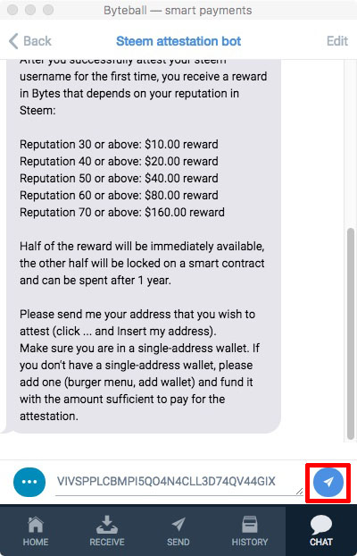 Did you know that as a Steem user you are eligible for free Byteball Bytes? All Steem accounts with a reputation of 30 or higher are eligible for free Byteball Bytes worth up to 160 USD based on your reputation: