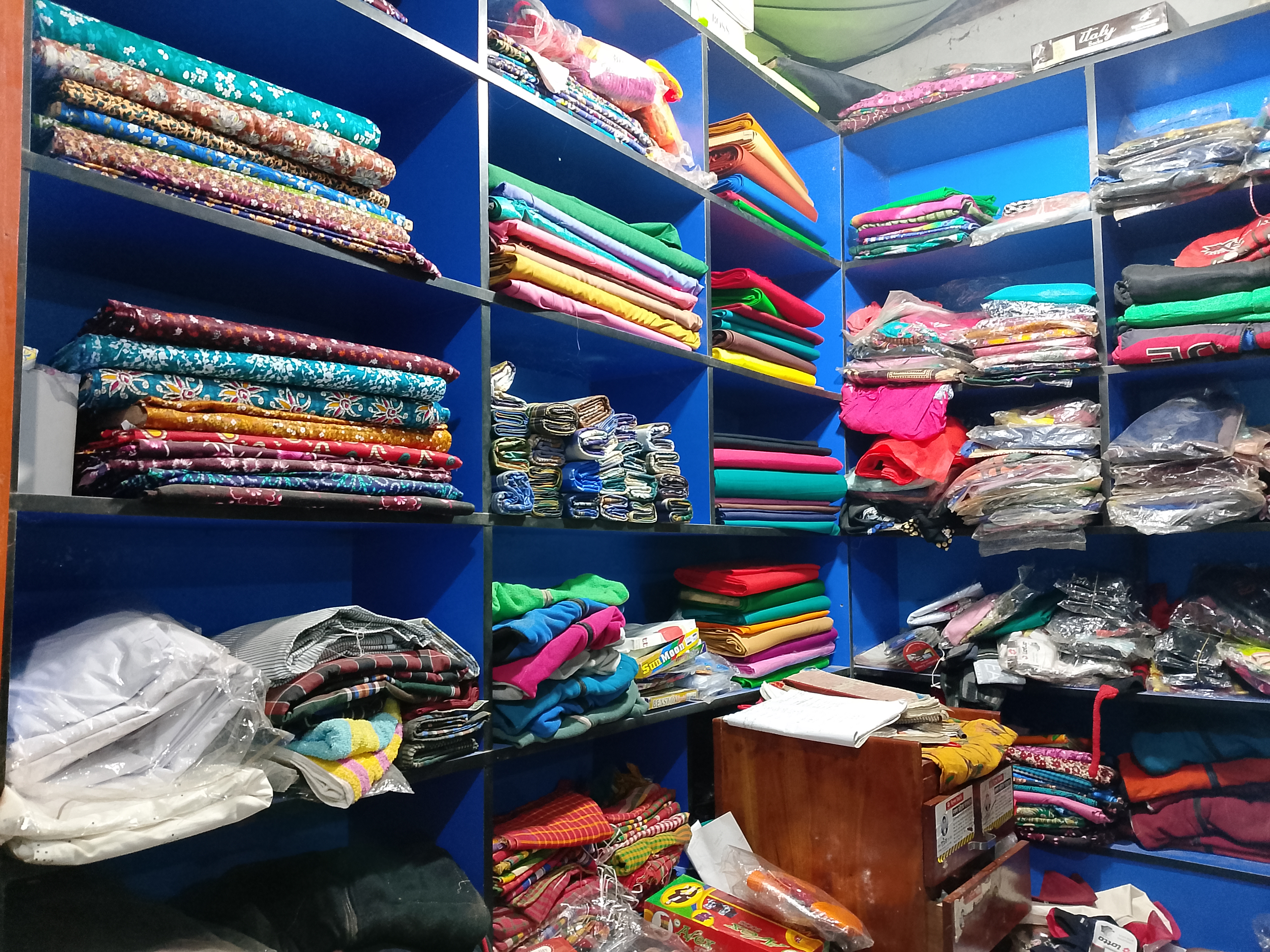 There is a clothing shop where various types of clothes are available. All kinds of clothing can be found here. The shop is probably located in our local market. We sometimes stop by and spend time here because the shop owner is someone we know. There are many clothes in the shop, and they are neatly arranged on racks, which makes them look very attractive. Anyone who wants can easily choose beautiful clothes from here.