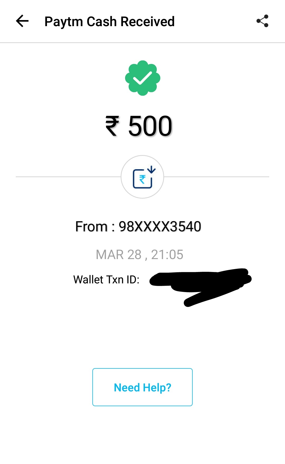 In return Vishal Kothari has kindly sent me ₹500 INR which can feed atleast 8-9 kids and also text me that more is coming on the way of good cause.