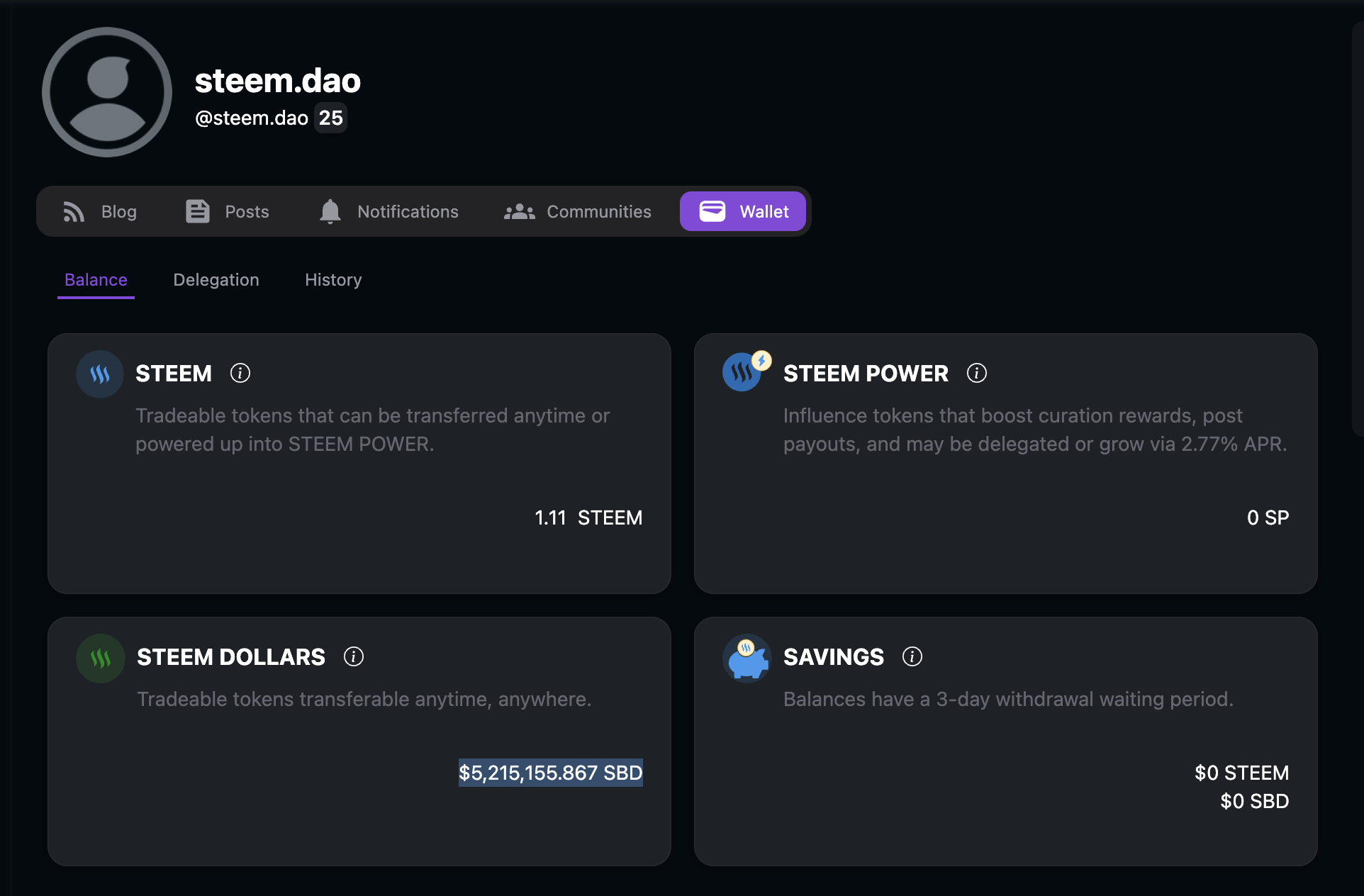 현재 SPS 보상 용도로 @steem.dao 계정에는 약 520만개의 스팀달러(SBD)가 축적되어 있습니다. 다들 아시는것처럼 Steem 블록체인의 입장에서 SBD는 3.5일 동안에 걸쳐서 $1에 해당하는 STEEM으로 상환을 해주는 프로토콜 부채에 해당하며 이 부채를 어떻게 활용할 것인지에 대해서는 오랜 시간동안 많은 논란이 있었습니다.