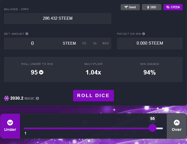Hello esteemed users of steemit today I will teach you how to maximize our profits in the game magic dice if you are not registered I leave the link so you can register and play https://magic-dice.com/?ref=drfk