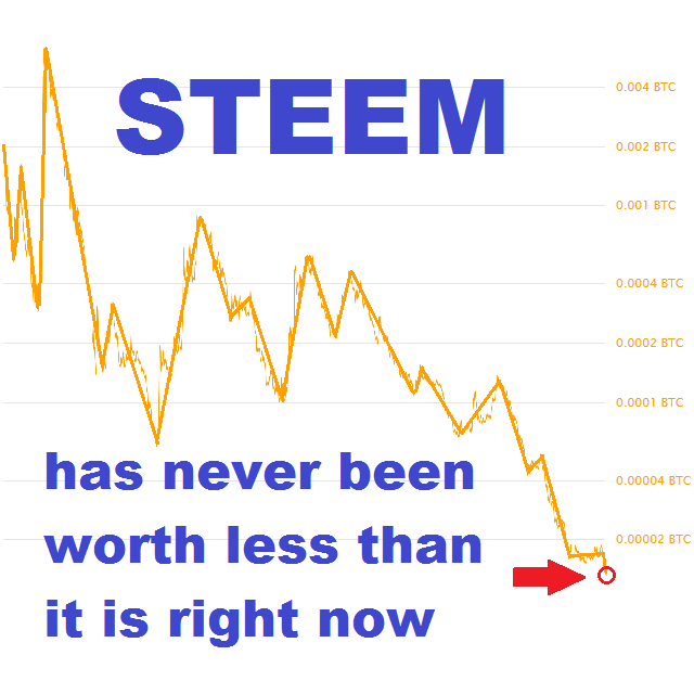 While this is hard on any of us who own STEEM, the good news of course is that now is the best time EVER to buy STEEM! It has literally never been cheaper than it is right now!