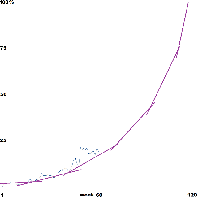 Technical analysis is usually used for charts of prices, but there is some cross-over with other charts that are also influenced by human psychology - like our progress meter!