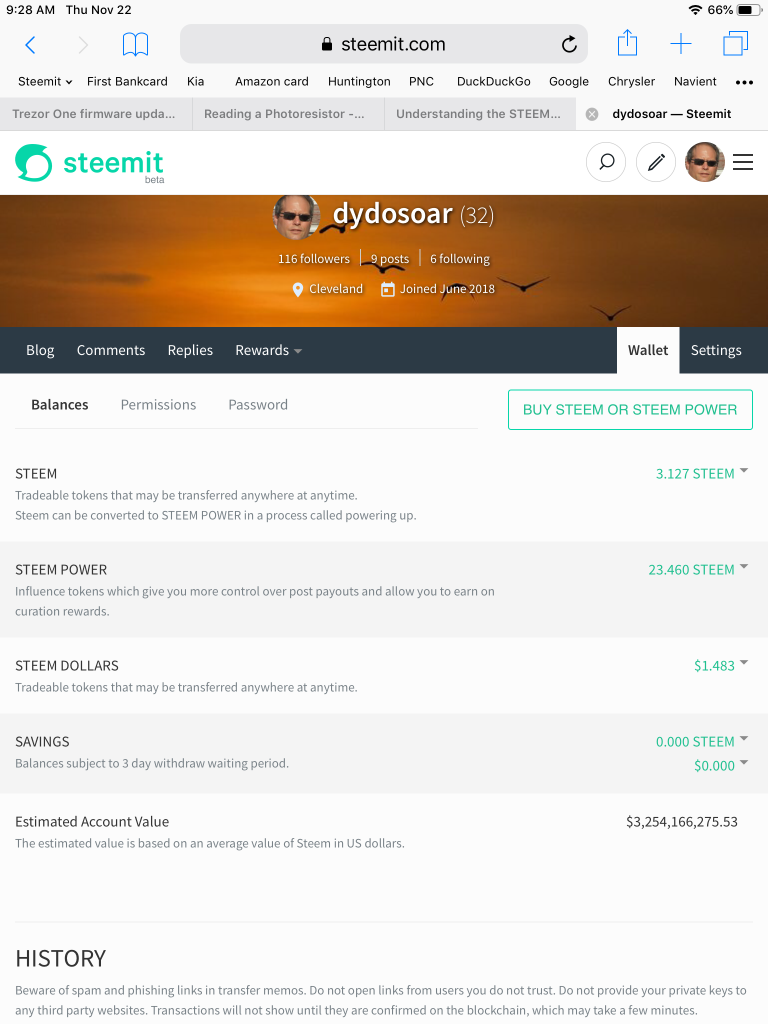 Wow I’m richdydosoar (32)in #steem • 7 years ago Just checking in this morning and I have much to be thankful for. My wallet has an estimated value of over 3.25 billion US dollars. Looks like I,m not going to work tomorrow. #lifestyle #riches