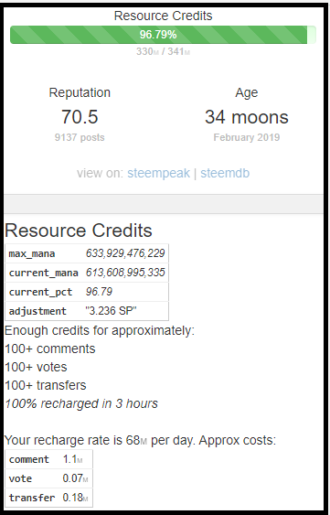 যেমন মনে করুন আমি কেবল মাত্র পোস্ট এবং কমেন্ট করবো । কাউকে কোন ভোট দেবো না কিংবা কোন ট্রানস্ফারও করবো না তাহলে আমি এ মুহুর্তে বা আমার রিসোর্স শূন্য হওয়া পর্যন্ত মোট কতগুলো পোস্ট বা কমেন্ট করতে পারবো সেই হিসাব টা একবার দেখে নিন।