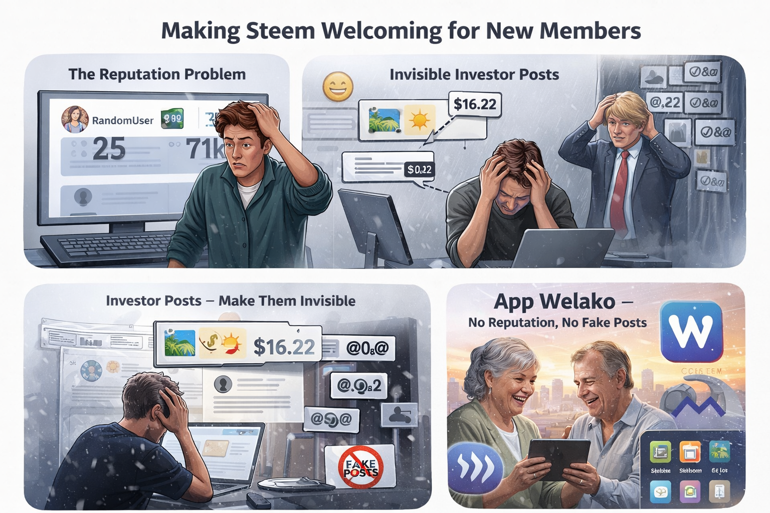 In wenigen Tagen geht meine Social-Media-Plattform welako.app in die finale Beta-Phase. Welako baut auf Steem auf und bietet das, was ich oben beschrieben habe: eine moderne, benutzerfreundliche Oberfläche für Menschen, die mit Blockchain nichts am Hut haben — aber trotzdem von ihr profitieren sollen.