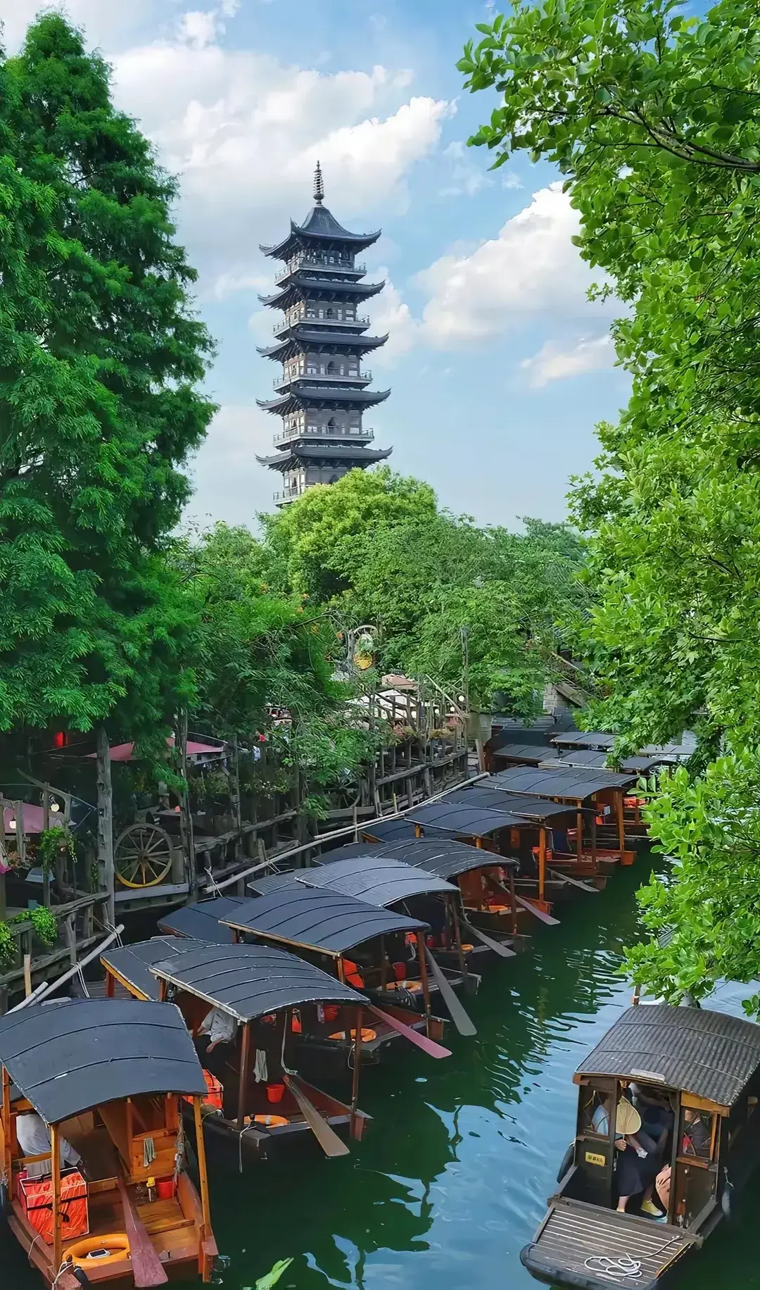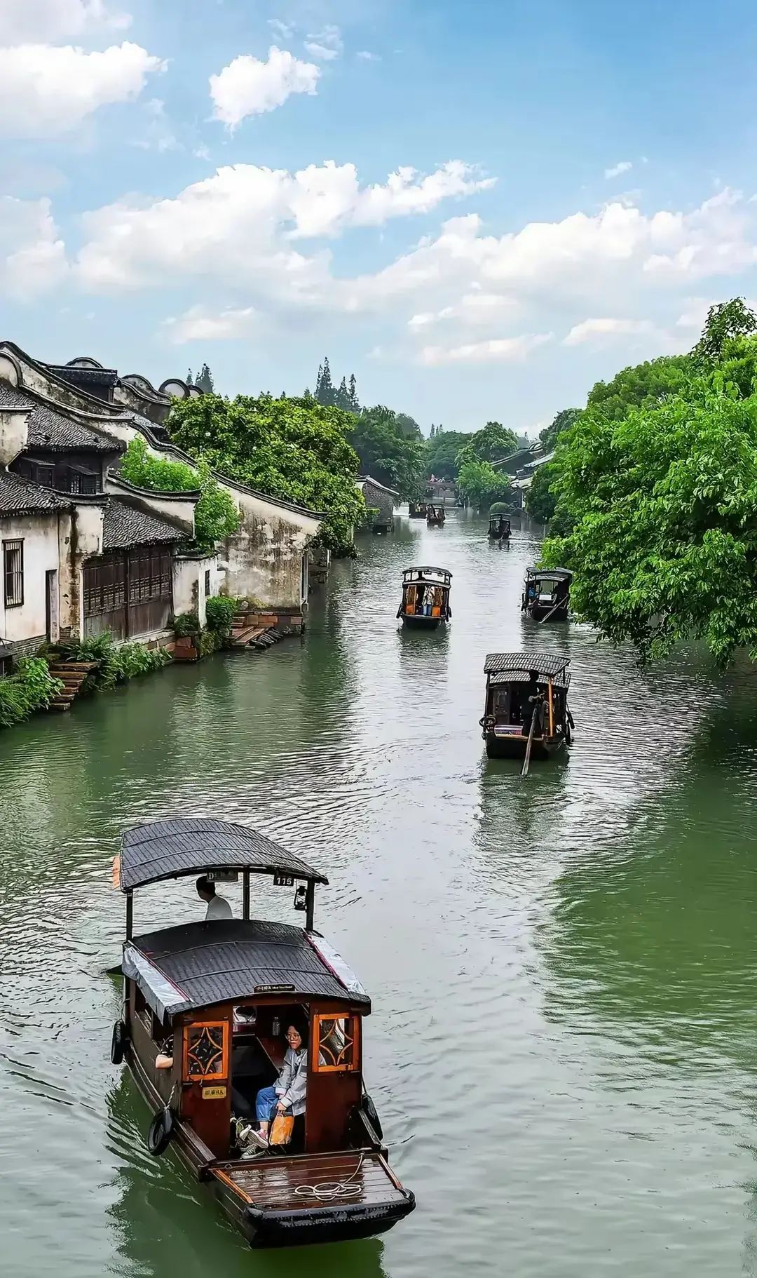 乘坐游船穿梭于河道间,欣赏两岸的粉墙黛瓦、古桥流水,仿佛置身于一幅美丽的水乡画卷之中。