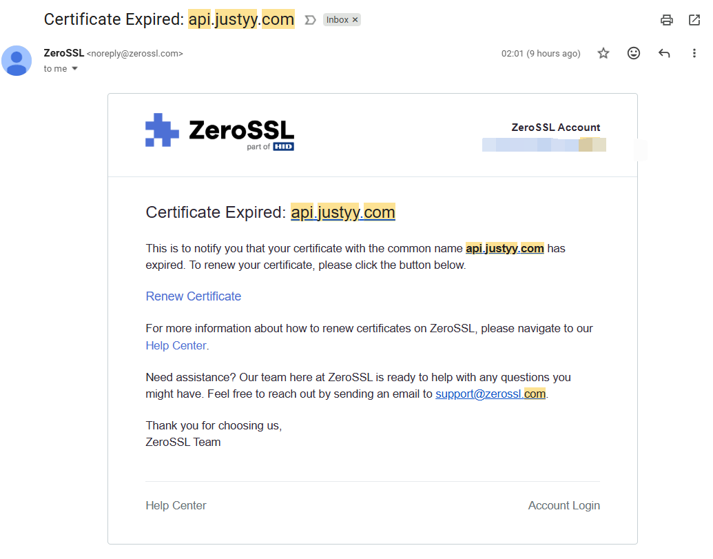 Renewing SSL for api.justyy.com