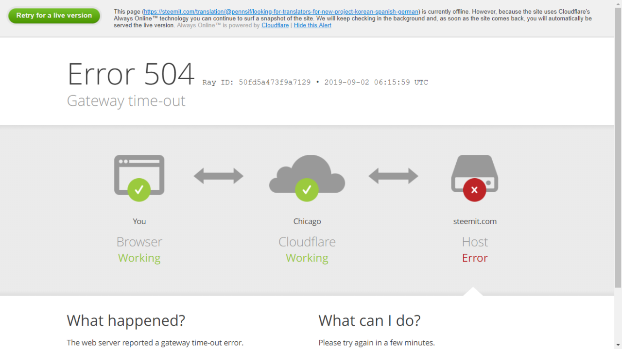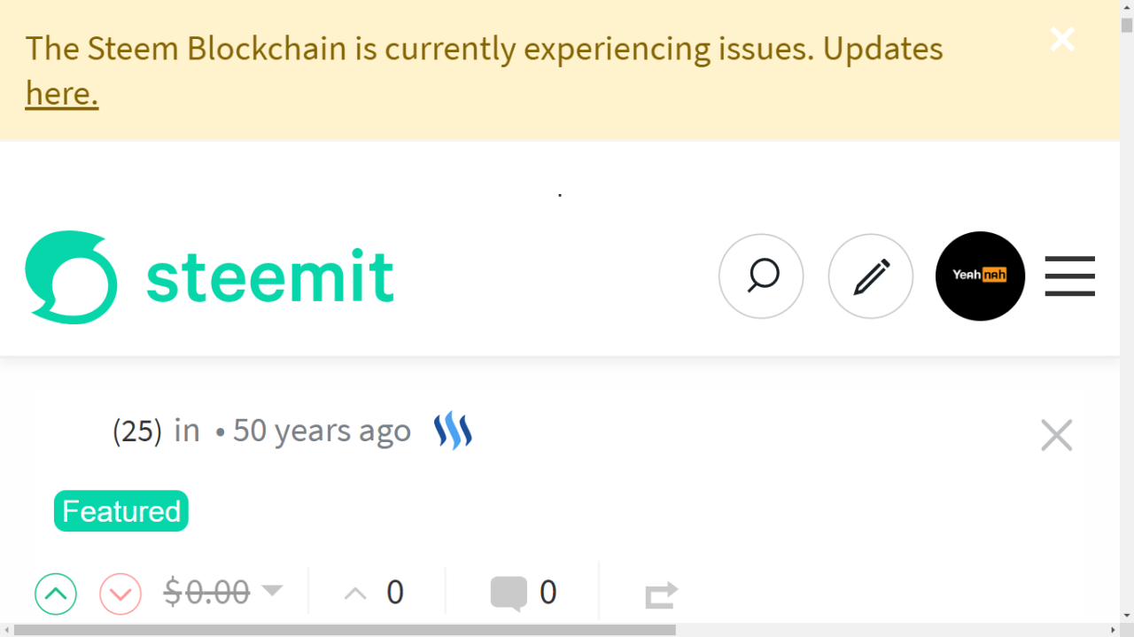 It reads and I quote "The Steem Blockchain is currently experiencing issues. Updates here."