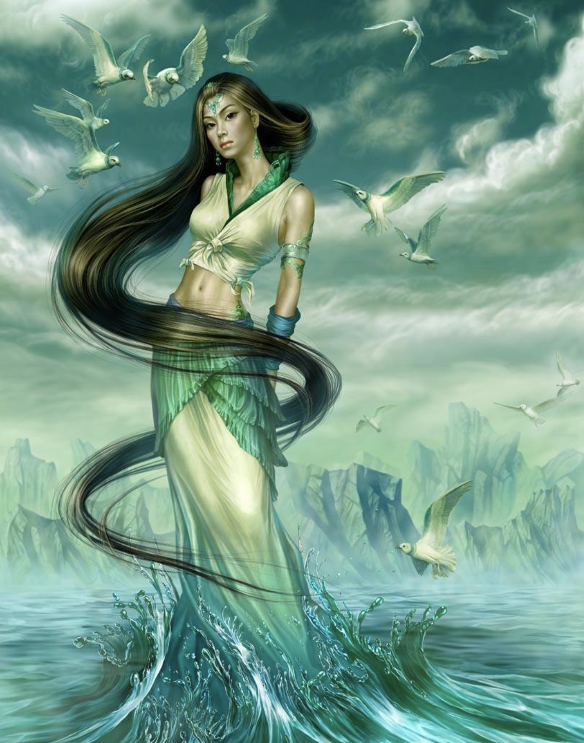 女媧按照自己的形象捏出了頭、臉和上半身,然而就在要捏下半身的時候,她猶豫了。