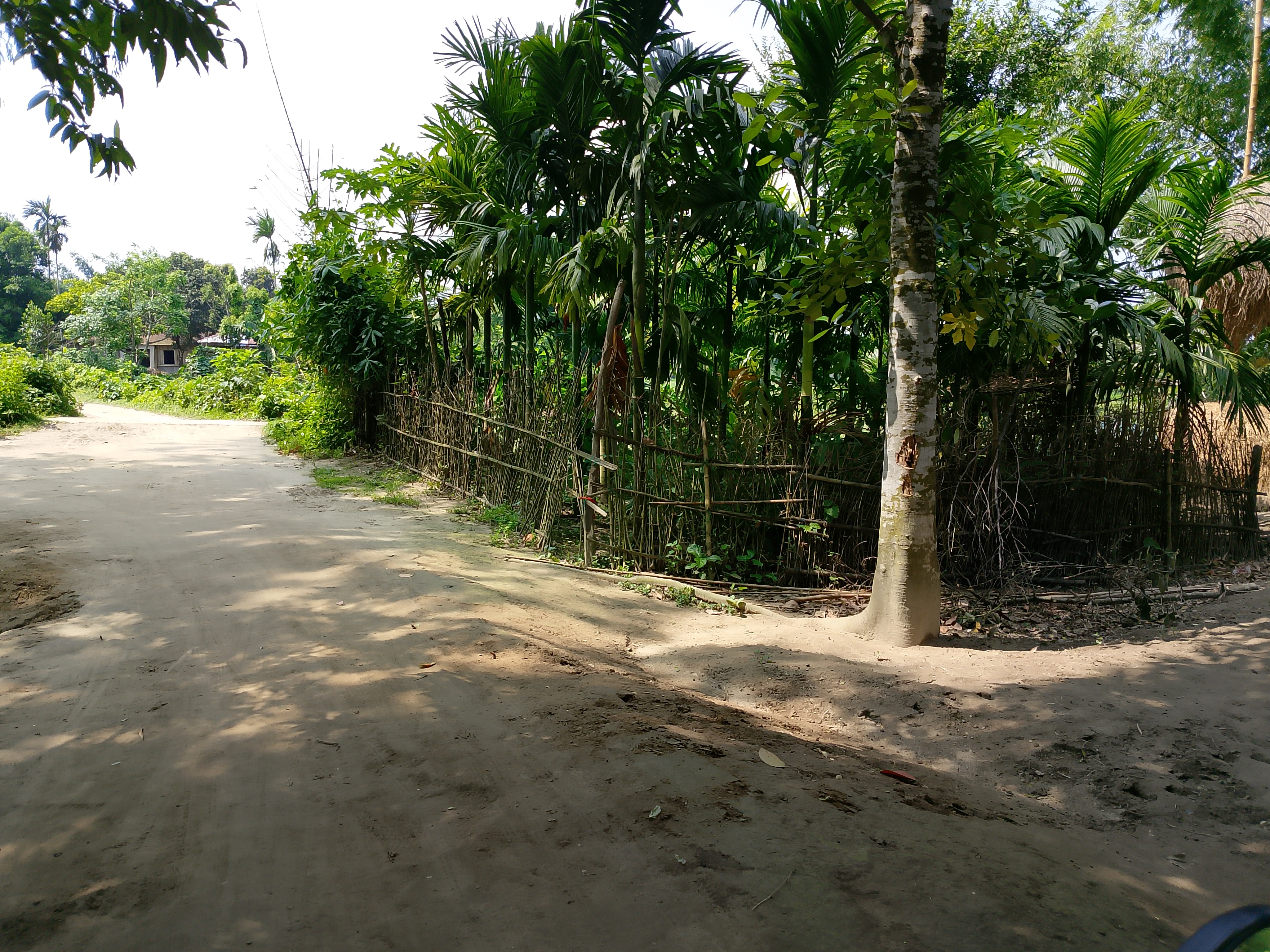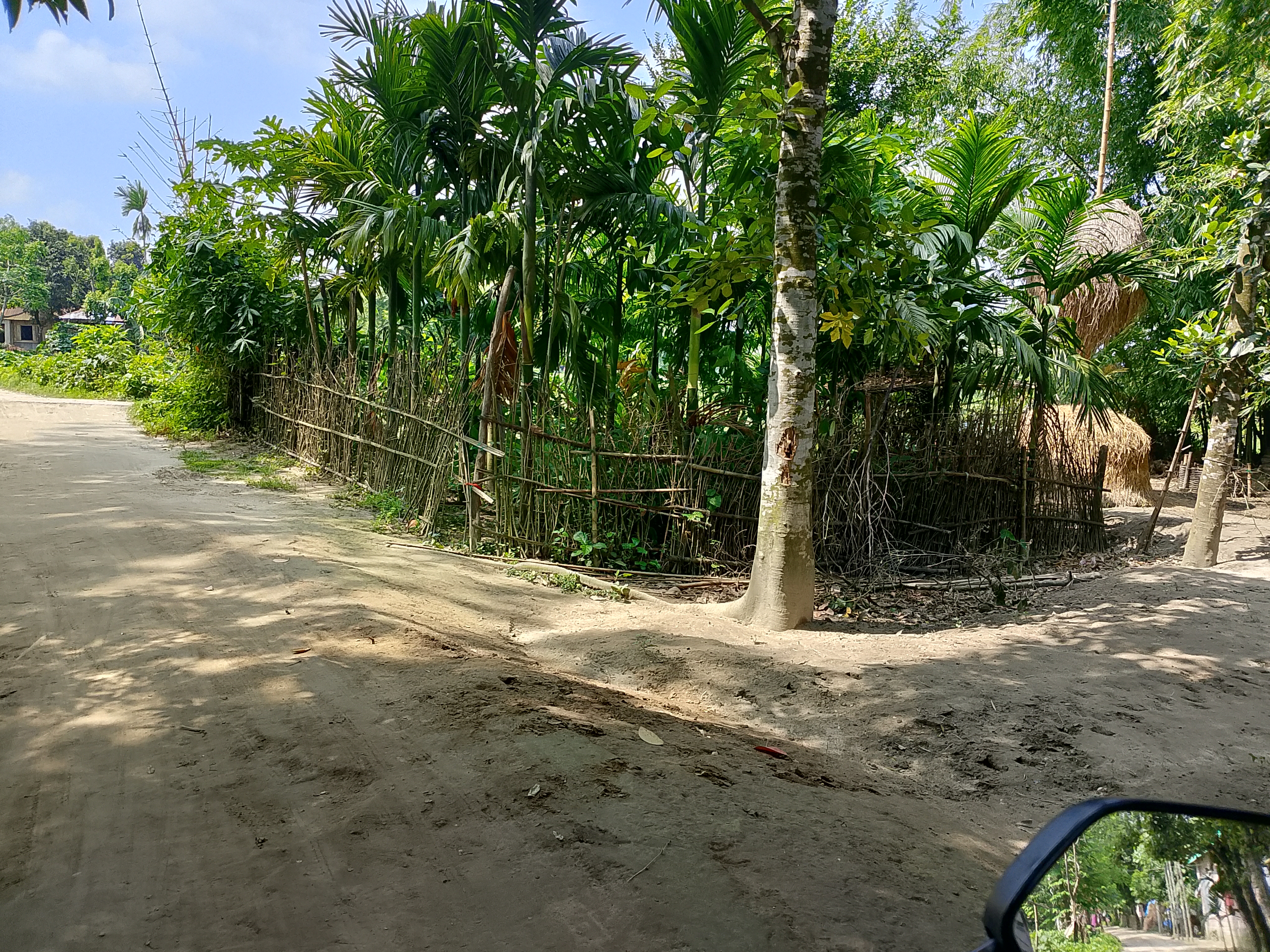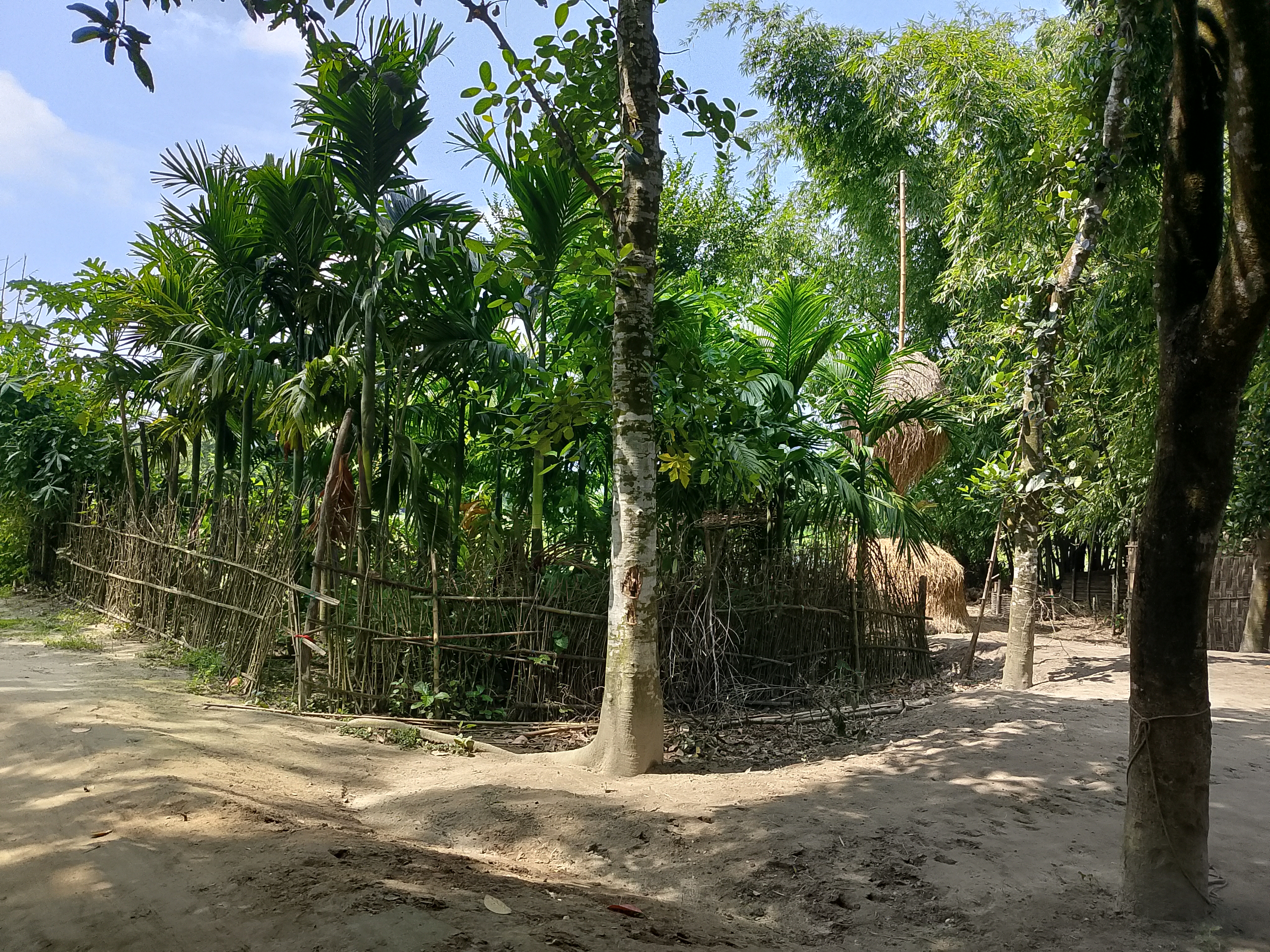 In front of the house, there is a place for planting trees. I was standing in front of someone's house, and from there I could see that some plants had been nicely grown together in front of the house. In almost every house, there are some open spaces where different types of trees are usually planted, especially in village homes.