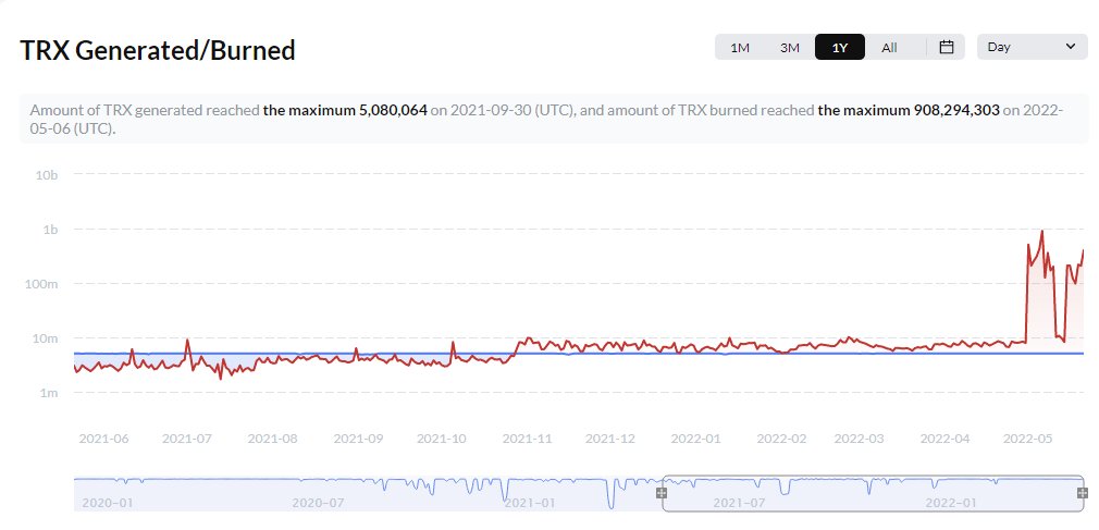 We can see the importance of this by looking at how well the TRX token has held up in the current bear market for cryptocurrency. My strong suspicion is that this is - in large part - because of their token burning economics, which can be seen from tronscan.org:
