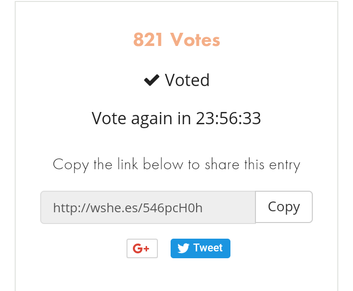 - เมื่อคุณคลิกลิงก์ในอีเมล์ การโหวตของคุณก็จะถูกยืนยัน ตามรูปข้างล่าง และคุณสามารถแคปเจอร์รูปนี้เพื่อการประกวดแบบแรกได้
