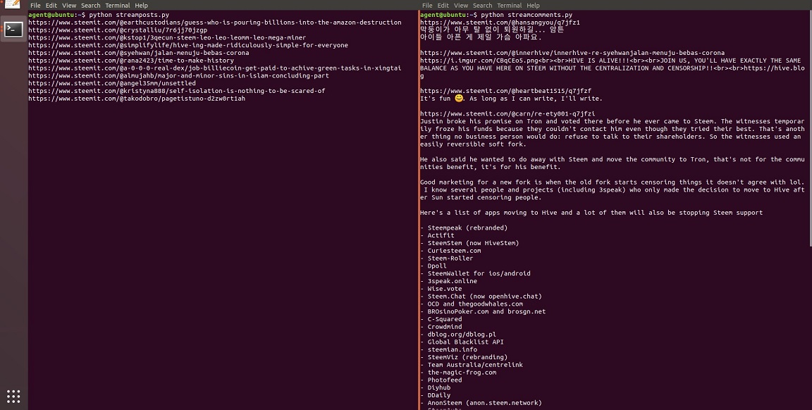 To run either program, open Terminal and type "python streamposts.py" or "python streamcomments.py". To exit press Ctrl + C or close Terminal. You can use the information in the tutorials to play around and create your customized feed. This can aid discovering content and regulating misbehavior such as spam. As a beginner, I welcome input on how to improve this code and explore new opportunities.