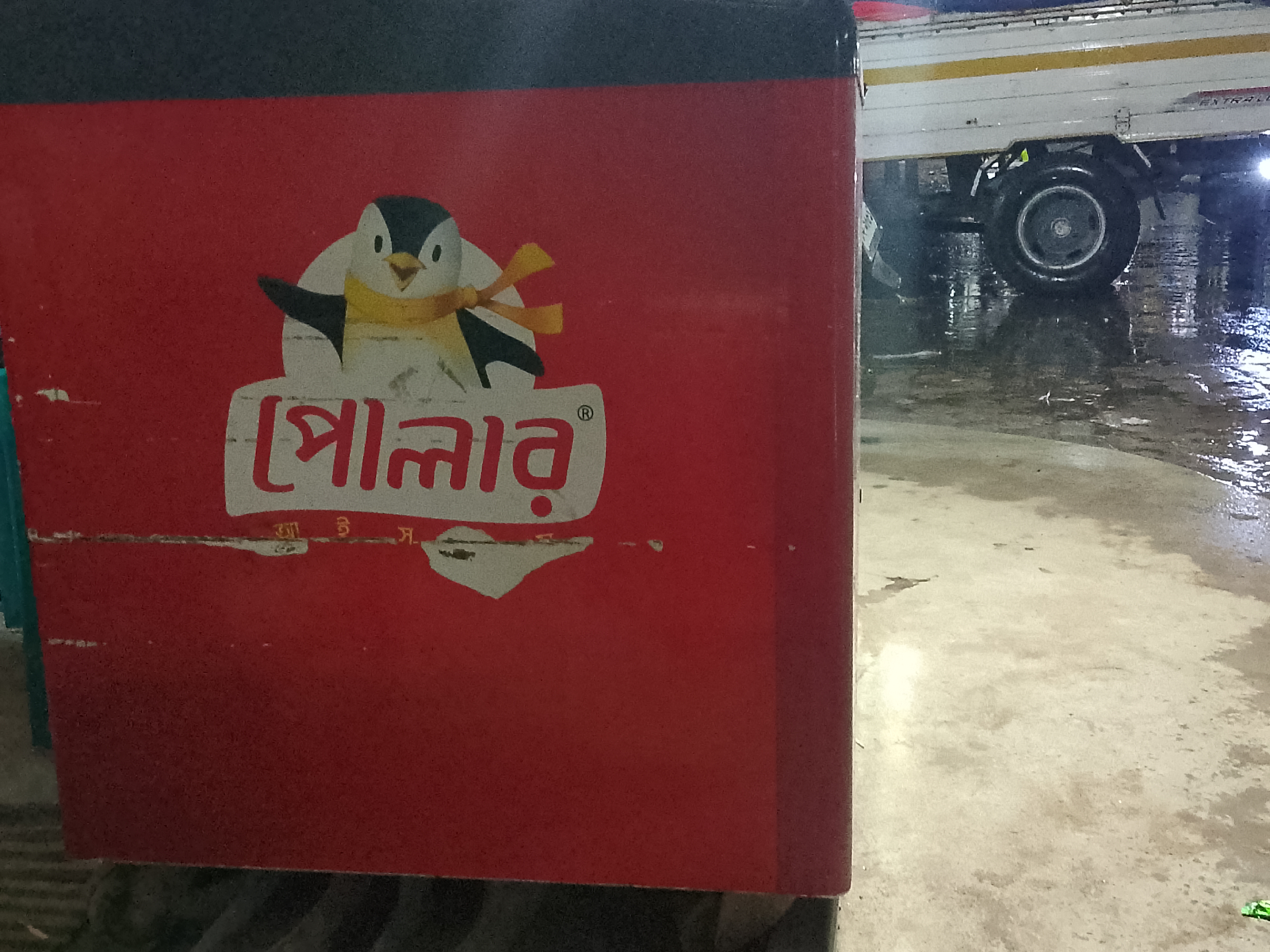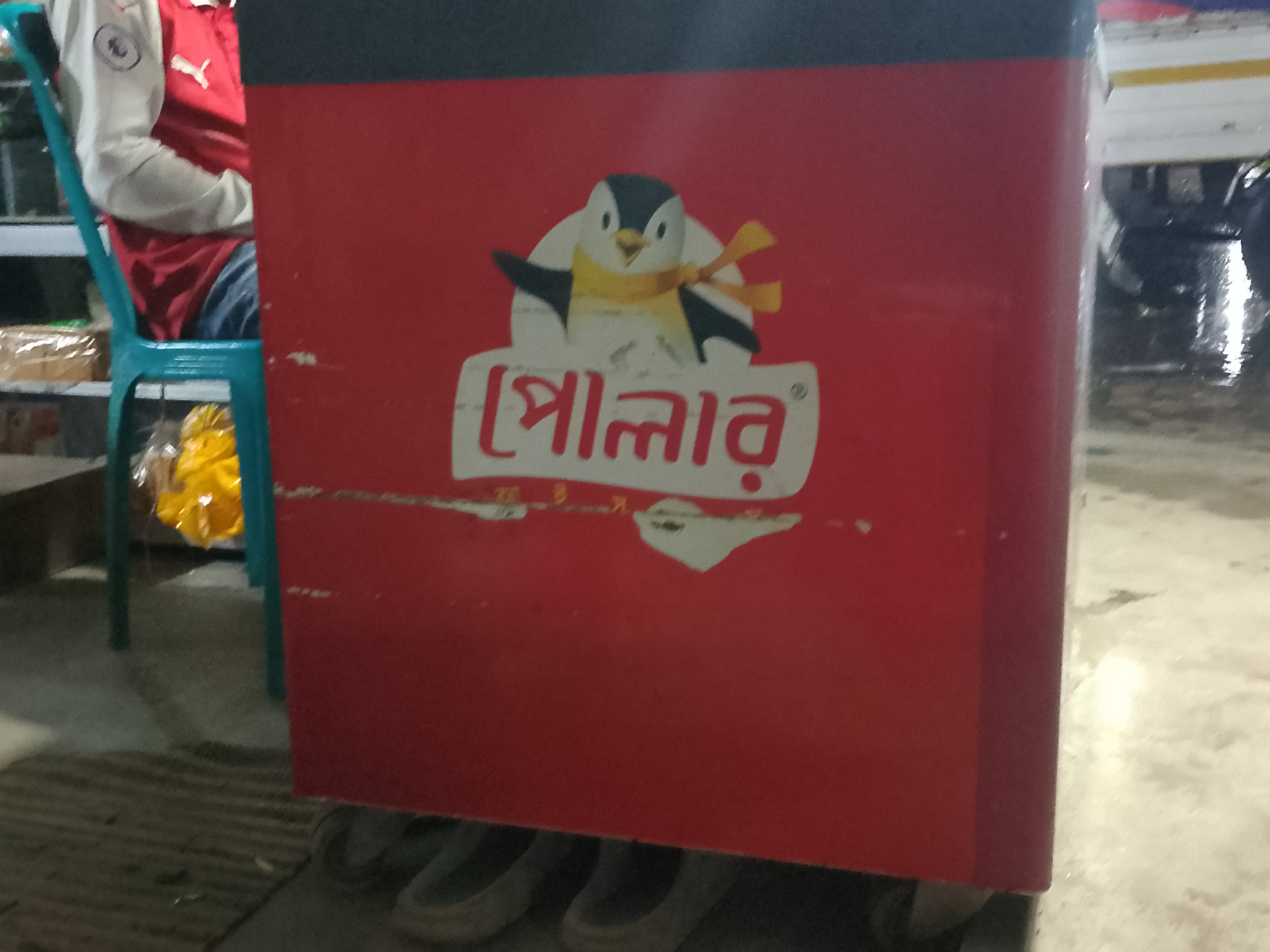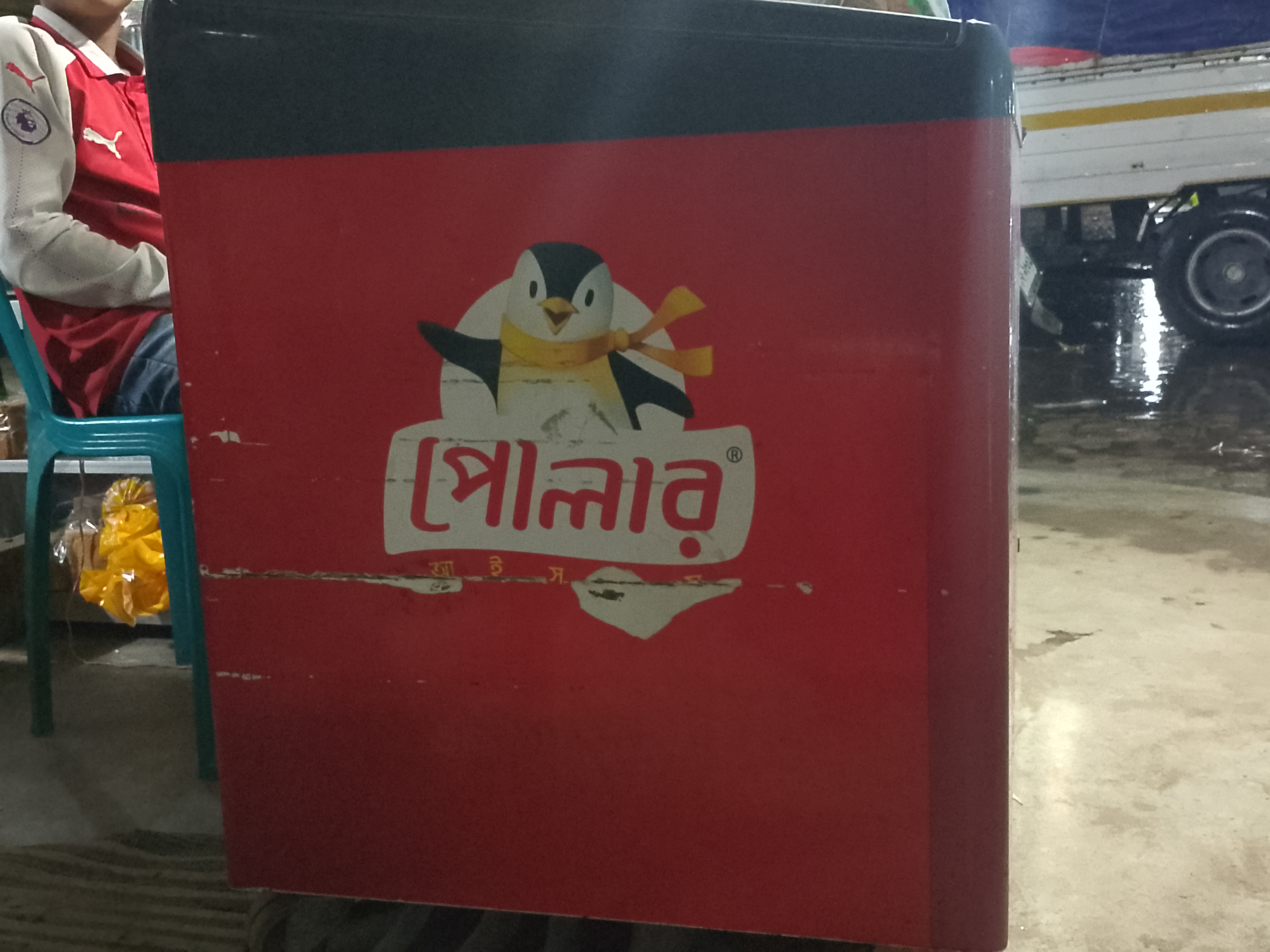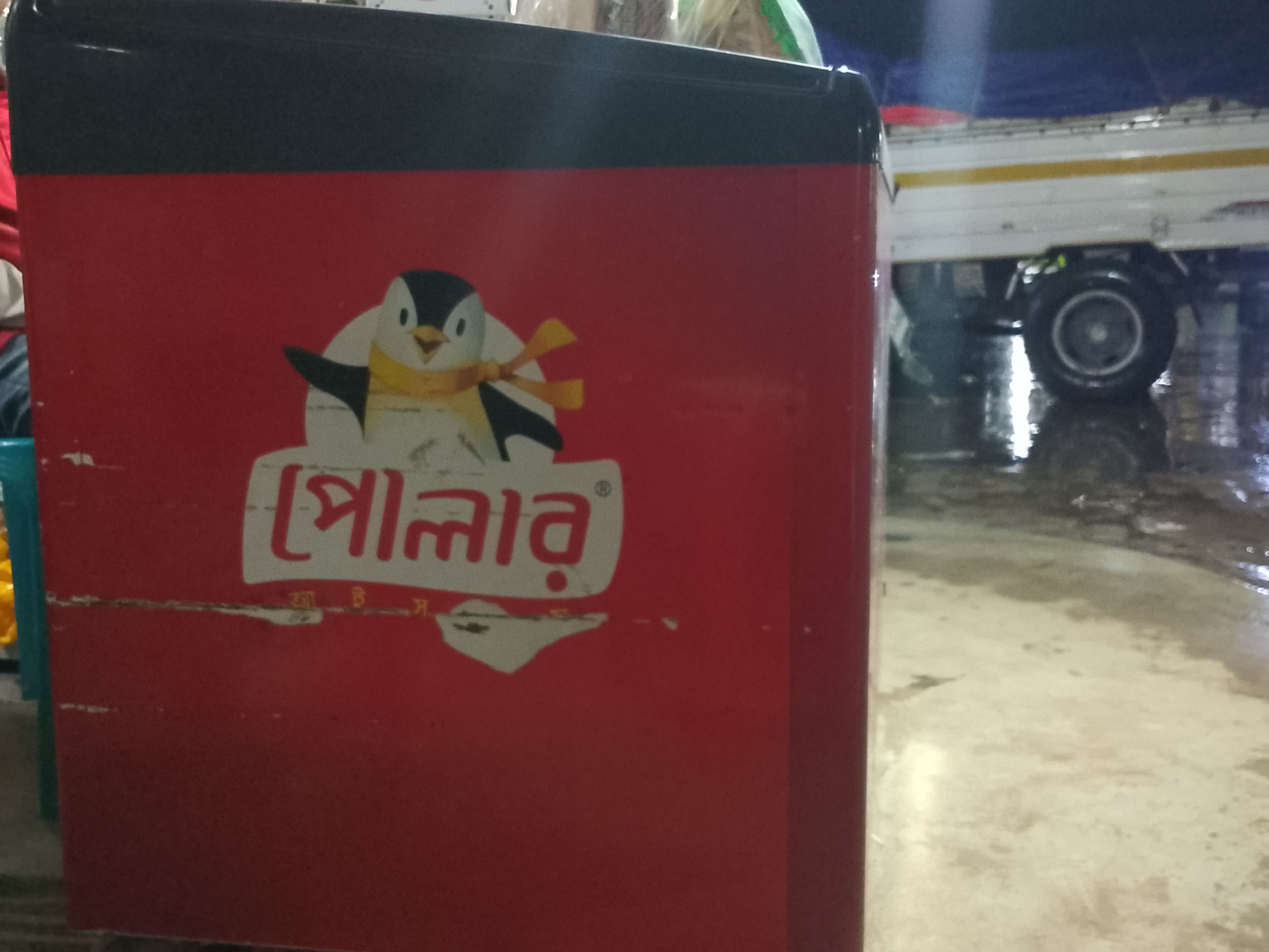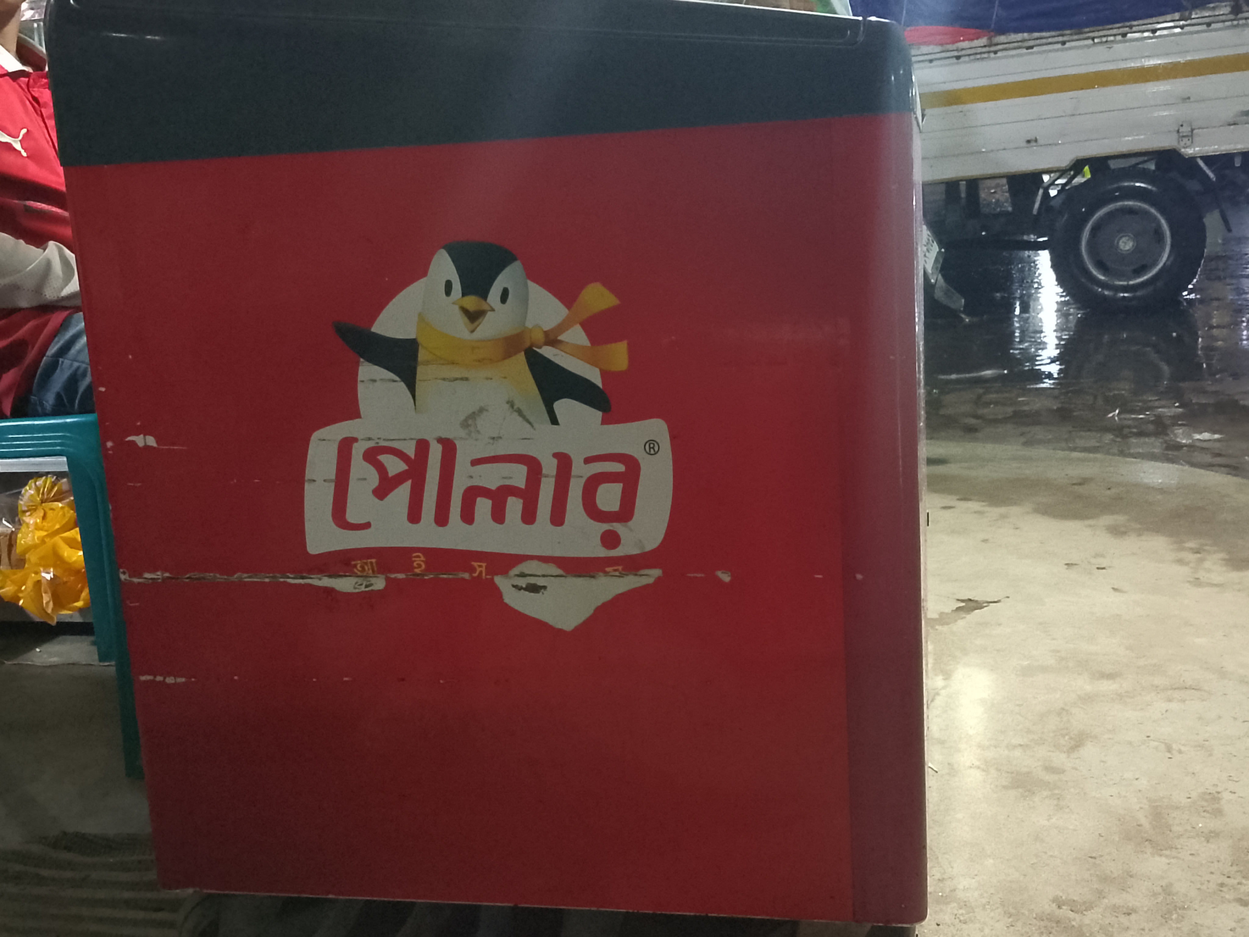 This freezer has been provided by Polar Ice Cream. There is an ice cream brand with this name, and the company has supplied this box to the shop. Ice cream is kept in this red-colored box, where many ice creams are stored.