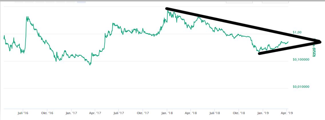 As it currently looks, it will take about 3 months until the uptrend and the downtrend line meet. Of course, this may change in advance and the Steem could break up or down, but I currently view this scenario as very unlikely.