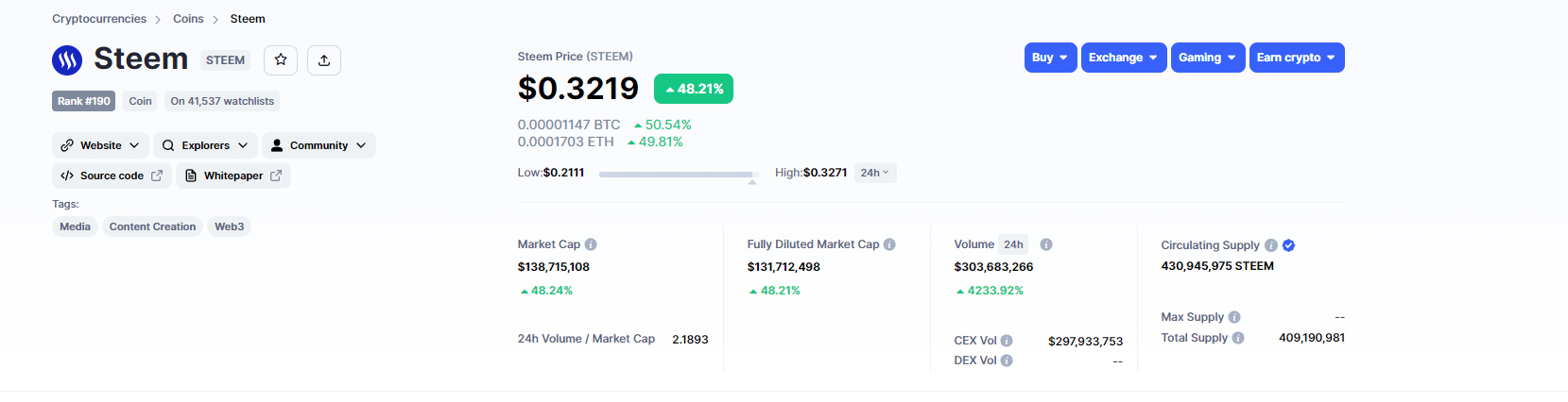 Will Steem Rise to a dollarupex-dev (59)in #steem • 3 years ago Steem as i am writing this post is bee trading at $0.3218 with a 48% growth in last 24 hours , it is very unlikely for steem to reach $1 at this point but i am bullish on steem and i think it will reeach a dollar near soon #upex
