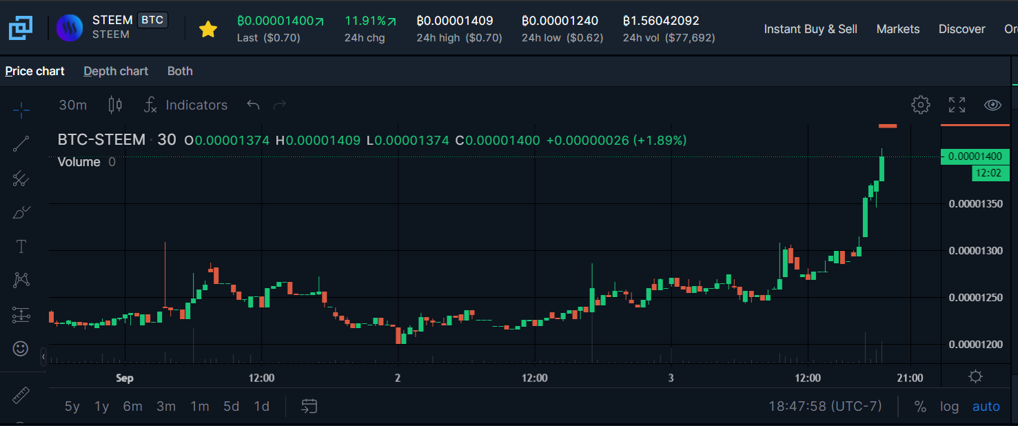 It is nice to see a bit of an upturn... be even nicer if Steem made it back to the April highs around $1.40!