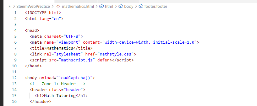 First, let's talk about Zone One. Zone one is where we have to prepare our header. In the background of this header, we have to add an image. I have used the image that was posted in the challenge post. Same image I have downloaded and placed in my folder and its source path I have given here. With its help, I created a structure of it through HTML and then I designed it with the help of CSS.