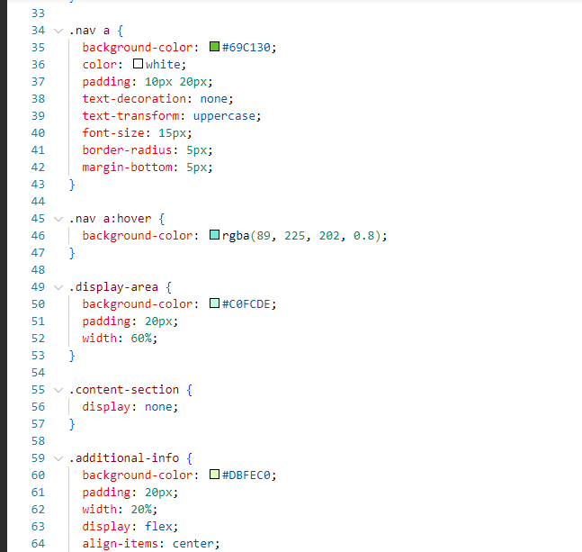 Before creating zone two I created a container to do all the work inside. I have given class to this container as a container. After giving it a container I then worked on zone two in which I created a new bar. To create the new bar that is showing on our left side, I have written it in the anchor tag, given its identity, and given a link to it. After giving the link I designed it with the help of CSS. It has been given a background color of green and similarly the white color of its text. Padding etc is given, font size is set and I have given it a margin from the bottom. After setting them like this, they are hovered over, which you can see in color. And then with it, I added its javascript so that it runs perfectly.