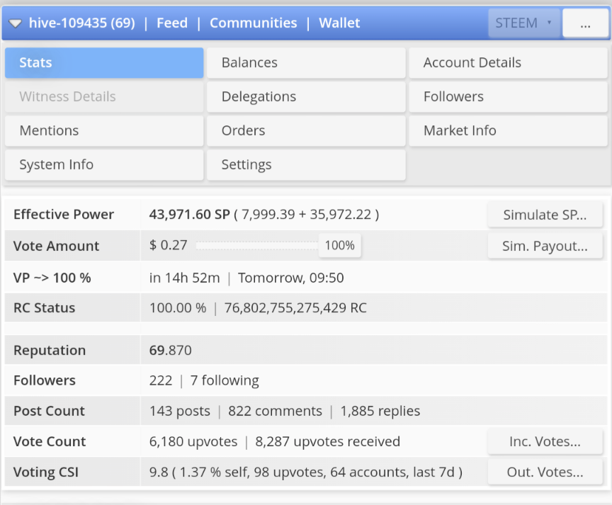 Yes, we have a well-established community curation account that is actually the official account of the community. It was created as soon as the creation of the community, in June 2022. The official and curation account of the community is @hive-109435. The statics of the community curation account are shown in the below screenshot.
