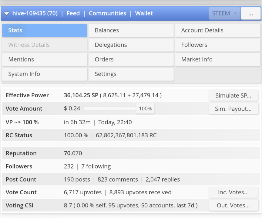 Yes, we have a well-established community curation account that is actually the official account of the community. It was created as soon as the creation of the community, in June 2022. The official and curation account of the community is @hive-109435. The statics of the community curation account are shown in the below screenshot.