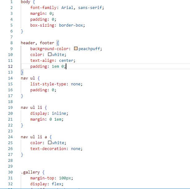 I tried to set a consistent font and removed default margins and padding to ensure a clean layout.I used Flexbox for the gallery to align images in a row and center them, with wrapping enabled for narrow screens.