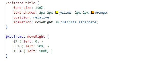 Finally, I applied an animation to the last title, making it shift alignment from right to center to left. This movement, combined with a shadow effect, gives the title a dynamic and stylish appearance.