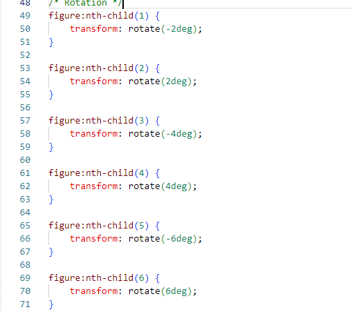 I used nth-child as I was mentioned in the post and used if them then to apply different rotation angles to each image, creating a playful staggered effect.